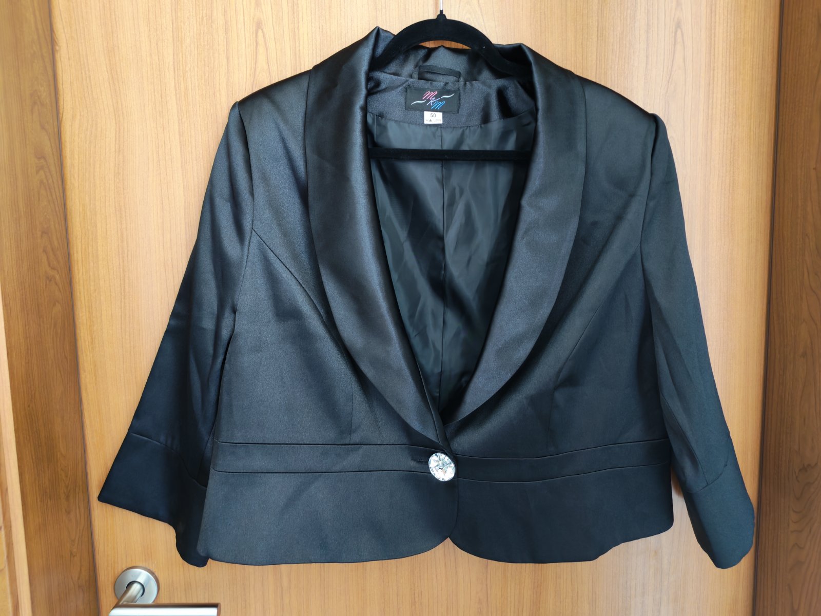 Čierne saténové bolerko, veľkosť 50, raz oblečené