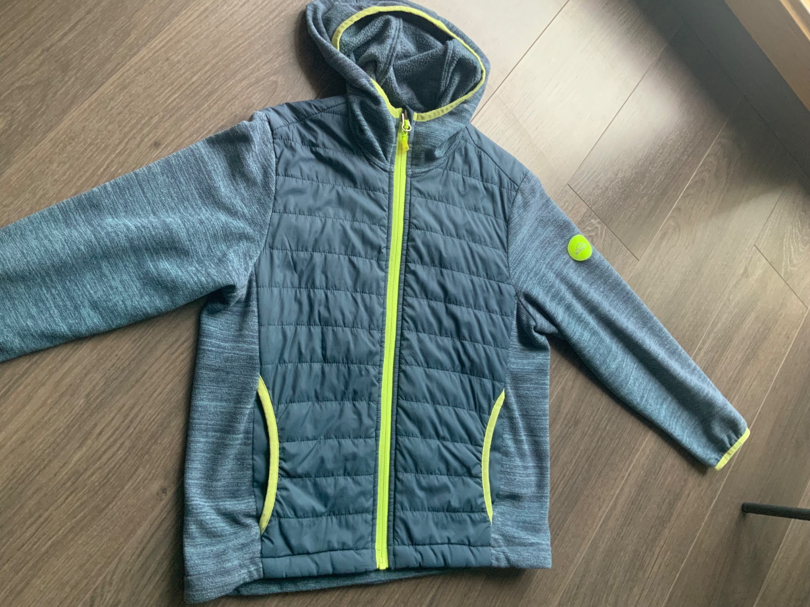 Flisova mikina, 1x praná, 1x oblečená, kupovaná pod lyžiasku bundu na lyžovačku, žial nám je už malá… šírka 51cm, rukáv 63cm, od krku po rukáv 13cm, dĺža 68cm