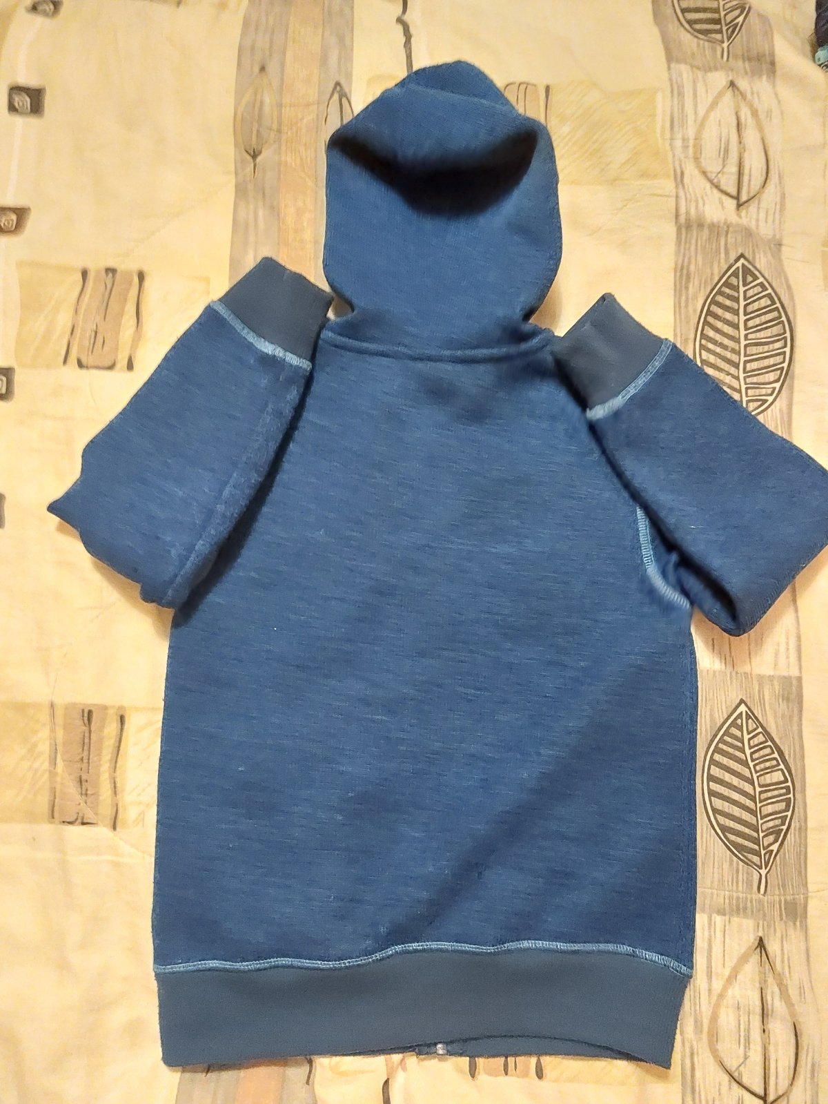 Dĺžka 47 cm, šírka pod pazuchami 36 cm, dĺžka rukáva od ramena 42 cm. Veľkosť 110/116. Teplá.