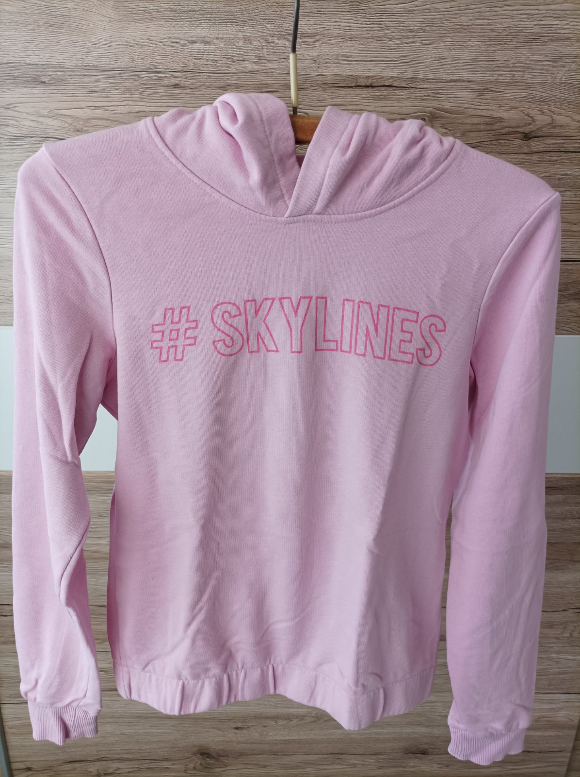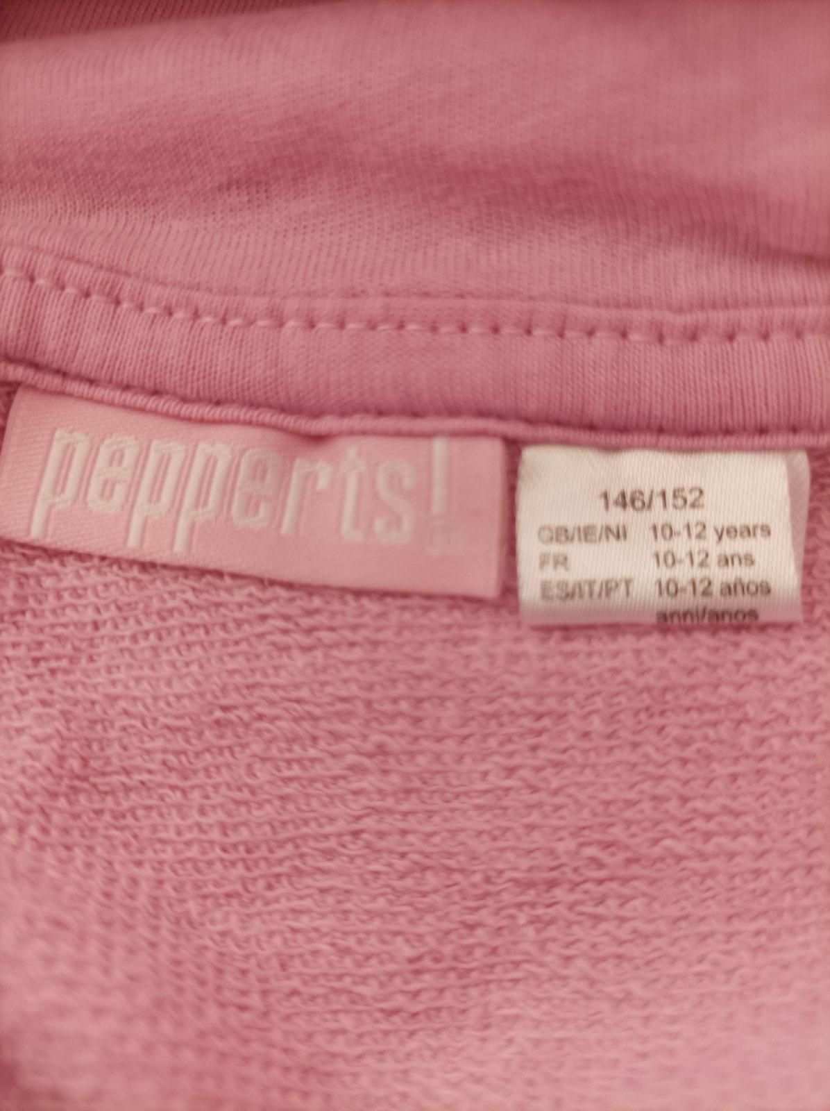 Veľkost 146/152, teda 10-12 rôčkov. Mikina slabo-ružovej farby so slúchadkami....100%stav, oblečená 1-2 krát, ako nova. Rozmery: dlžka 57-58 cm, šírka pod pazuchami 4-42 cm, dlžka rukávov od krku 6...