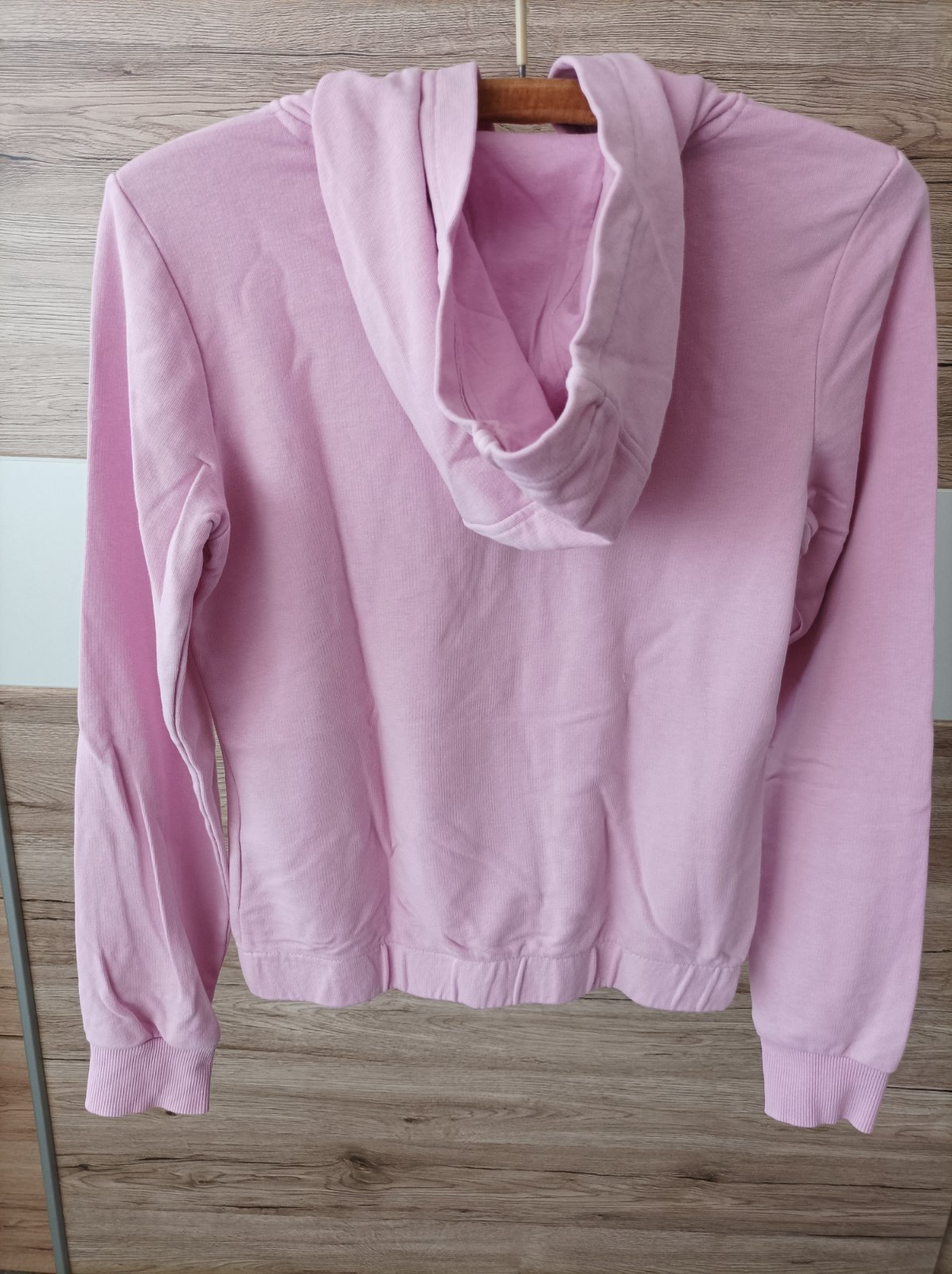 Predám ružovú mikinu s kapucňou, veľkosť 146 - 152, známky používania.
