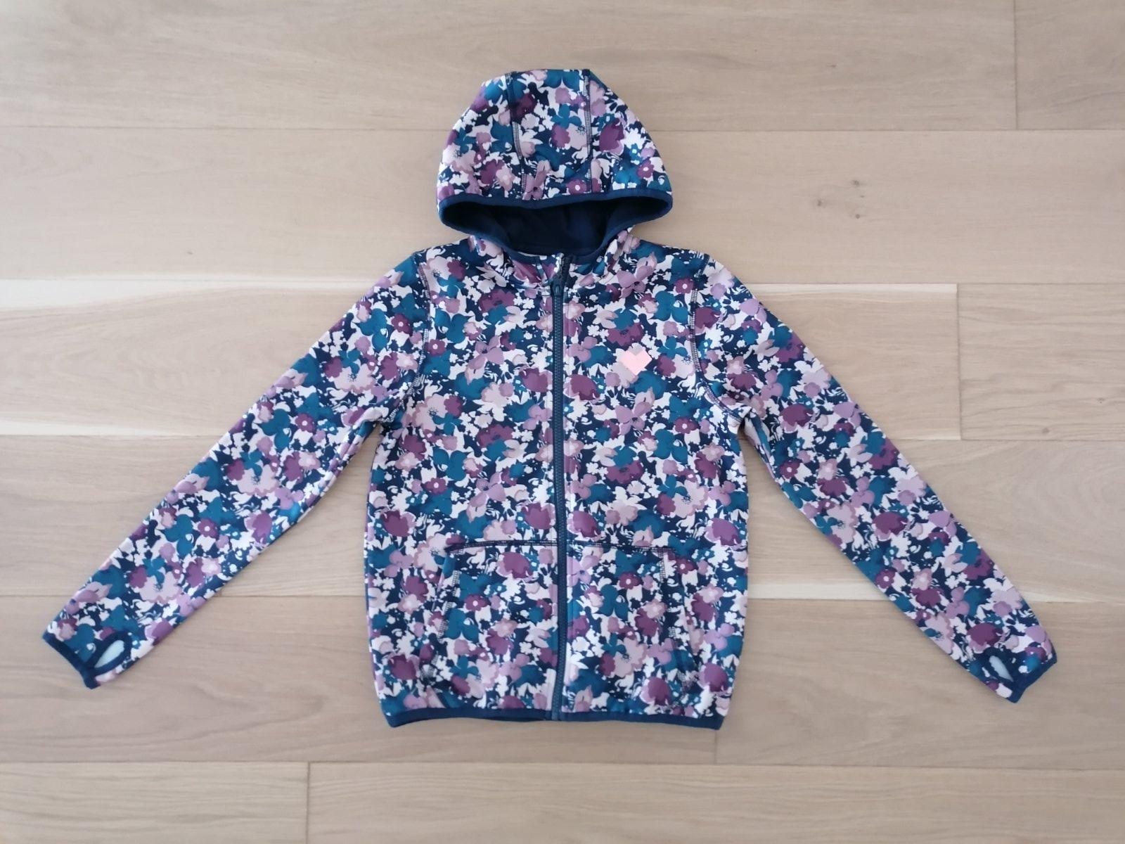 Mikina zn. Vertbaudet veľ. uvedená 152 (podľa mňa kľudne už od 146), dve vrecká, na rukávoch otvor na palec, vhodná na športové aktivity, krásna kombinácia farieb tmavomodrá-bordová-ružová.