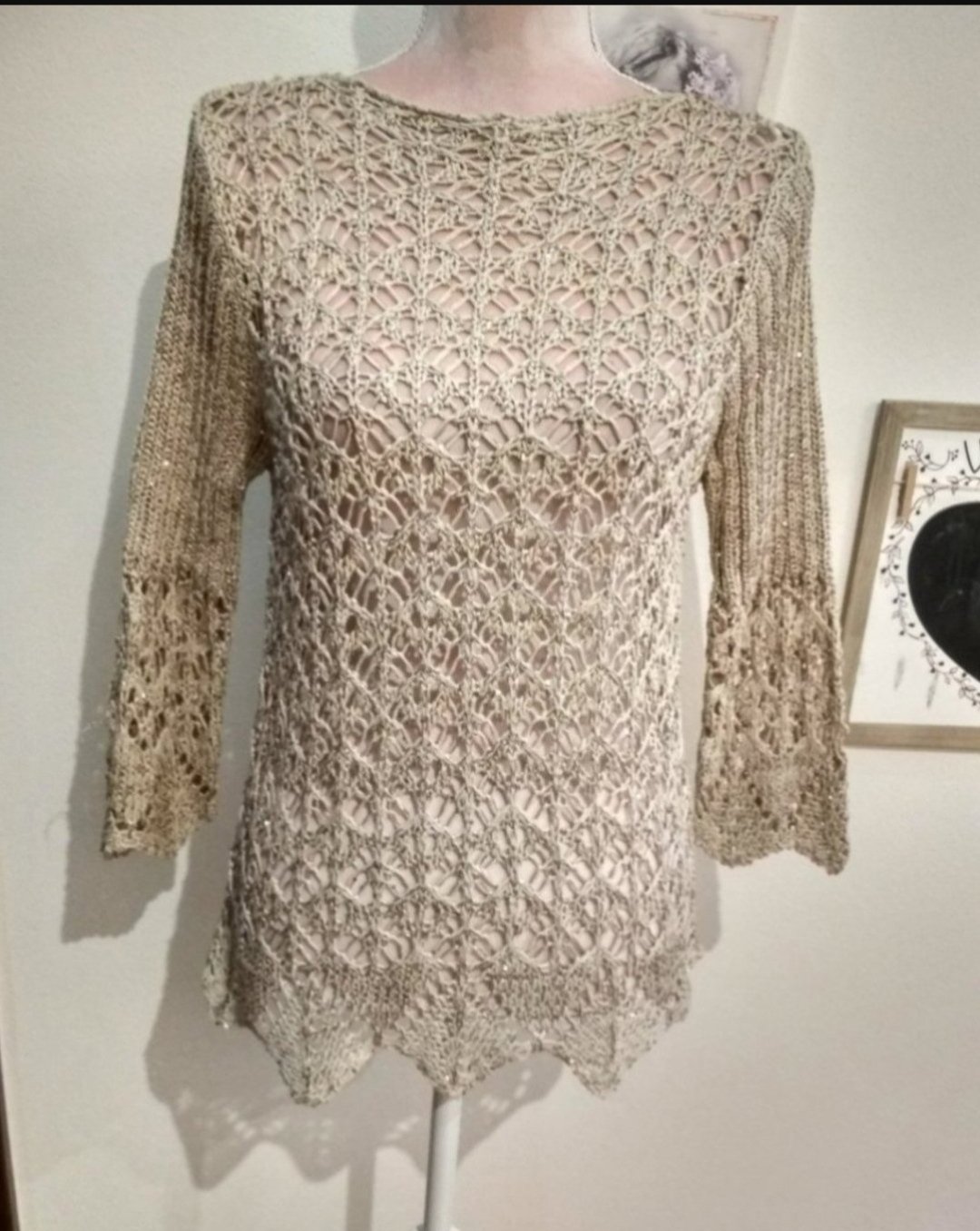 Kupovaný v butiku v Trnave, je naozaj veľmi kvalitný Krásna, výrazná farba, pekný odtieň hnedej Je príjemný na telo, na nosenie. Veľkosť M/L, premerajte-šírka cca 49x2, je to taký voľnejší, padavý ...