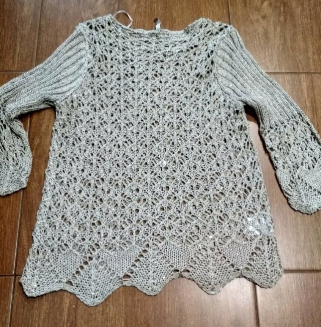 Svetrík je bez poškodení, bez žmolkov, veľkosť uvedená M/L, svetrík má veľký šálový golier, dlžka svetrík od ramena-69cm, dlžka rukáva meraného od ramena-50cm,dlžka rukáva meraného spod pazuchy-47c...