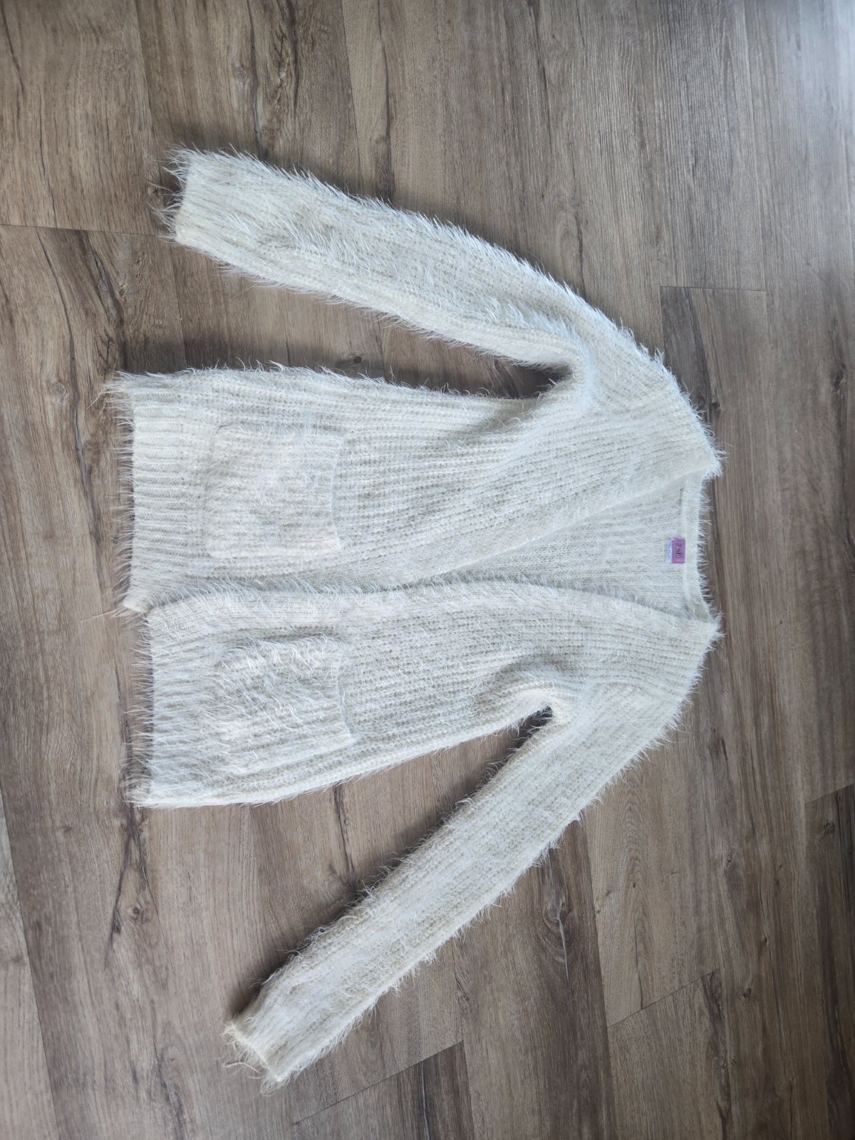 Pekný chlpatý sveter. Poprepletany zlatou niťou.