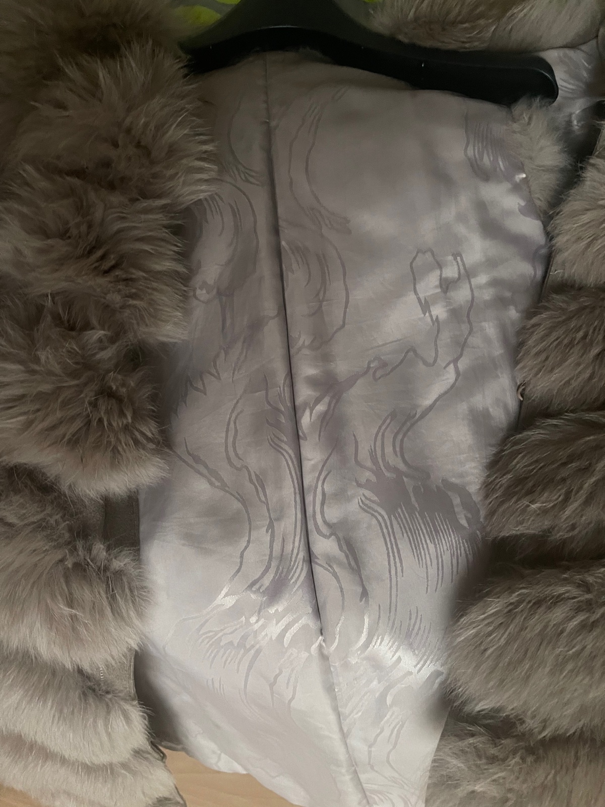 Vesta na prechodné obdobie, štrikovaná z hnedej a bielej vlny. Kapucňa má veľkú kožušinu, zapínanie na gombíky. Jeden jedinký kus - takže originál :) Celková dĺžka 61cm, šírka 2x46cm , ešte povolí.
