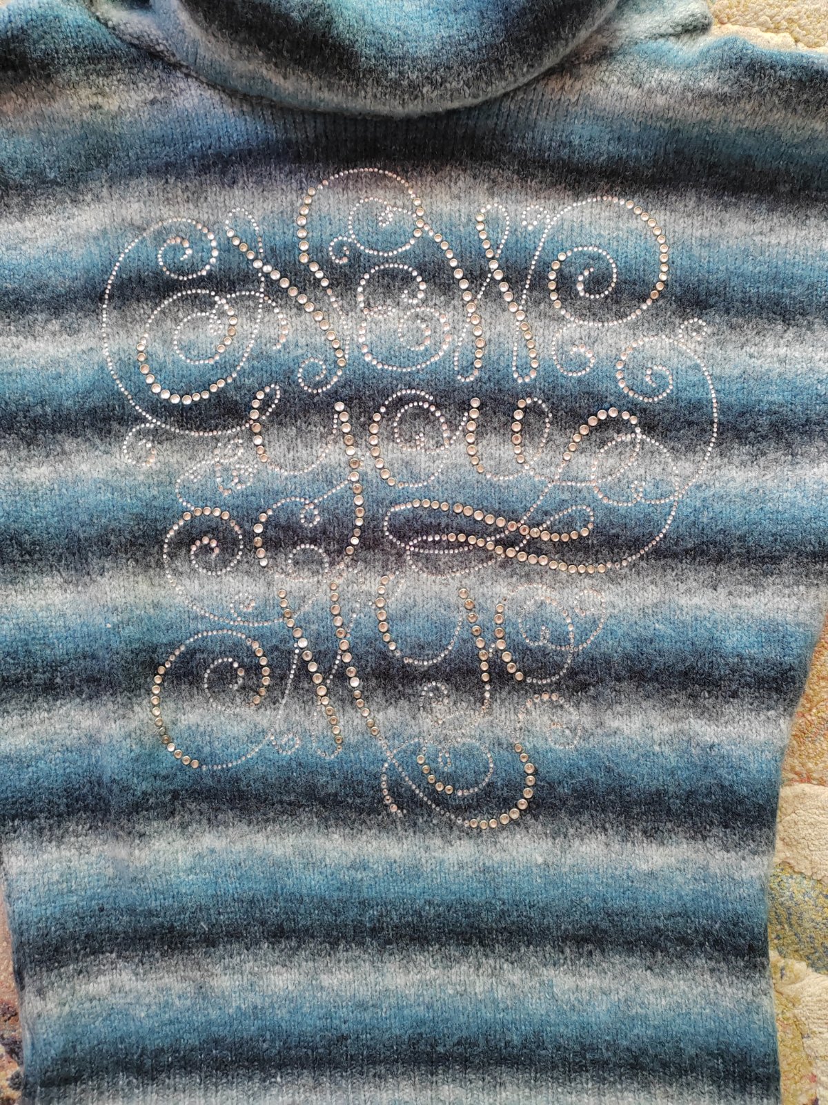 Na striedačku nosený pulover.nema číslovanie ,veľkostne sedí na /s-m-l/ ,nechýbajú glitre ,dobrý stav