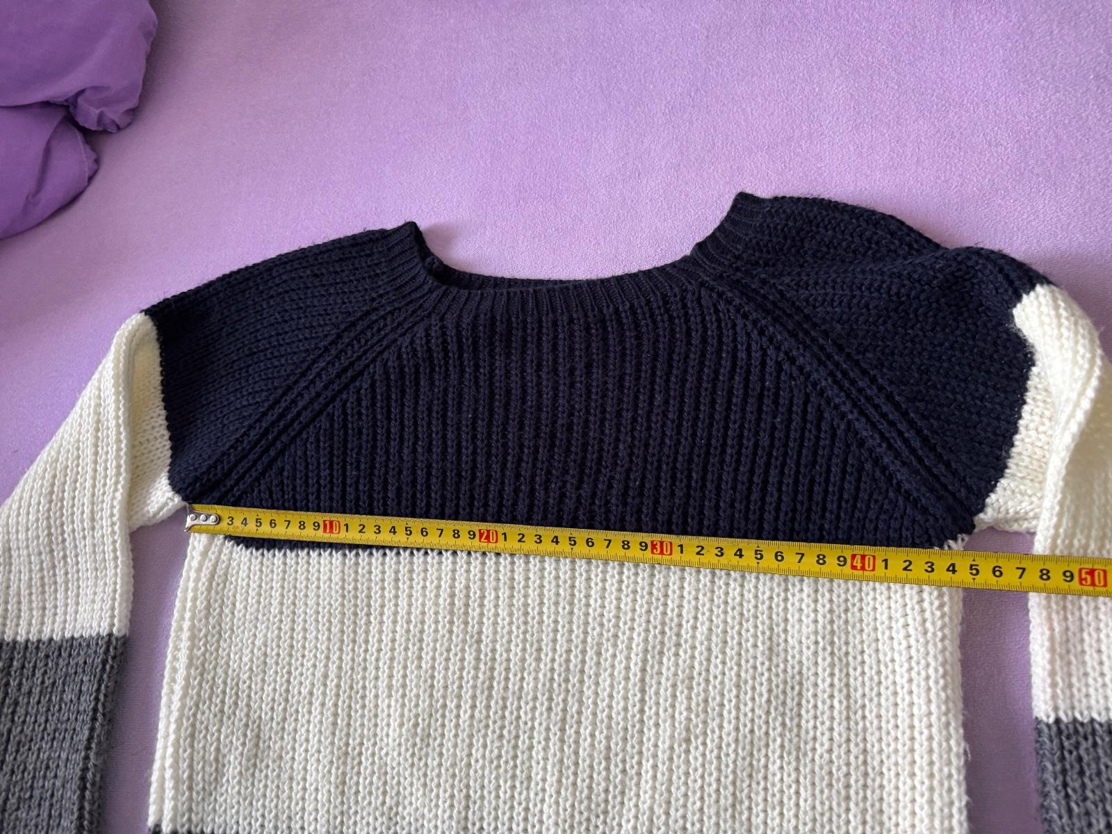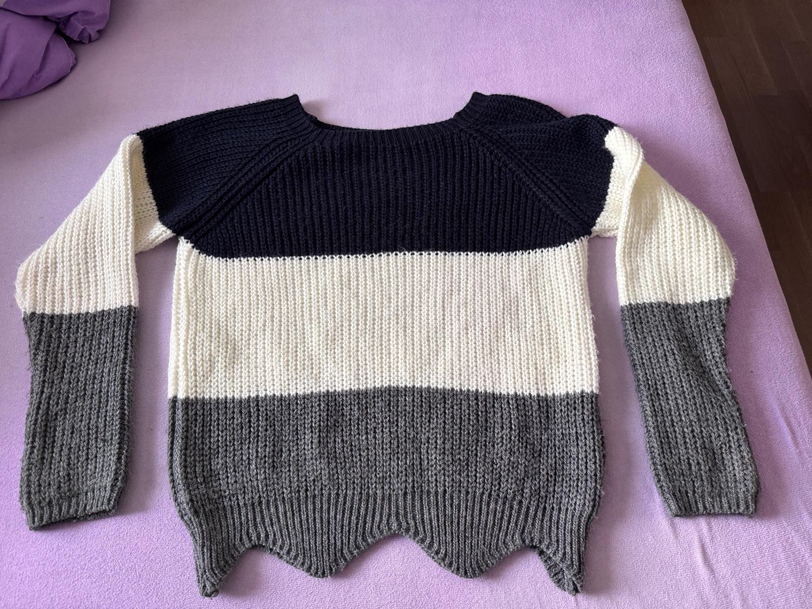 Ako novy. Mozno 3x obleceny. Dcerka nechcela nosiť. Strieborna ciara,pruh je vo svetriku len sa nedalo vidiet na fotkach