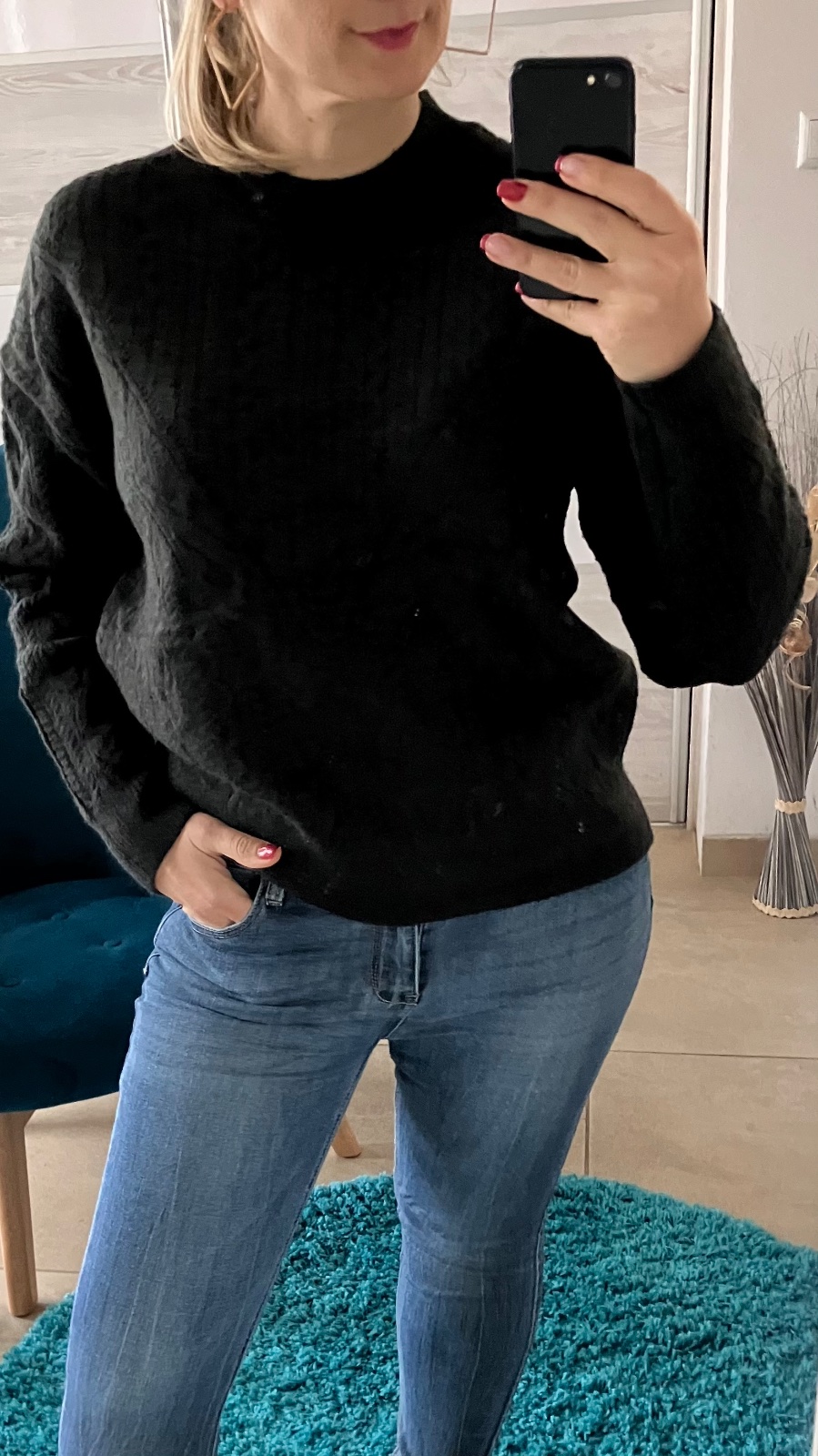 Sveter zo vzorovaného úpletu čierny (UNI)