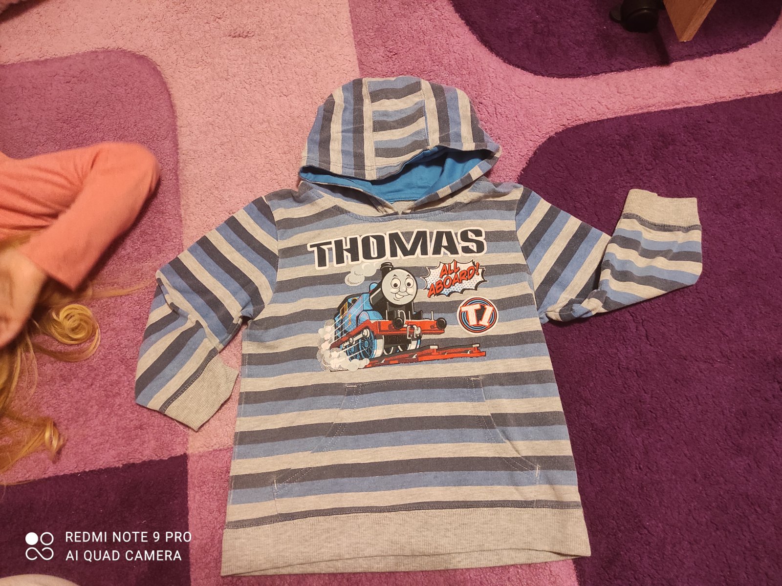 Málo nosená, podľa mňa o číslo menšia, preto uvádzam 110-ku, aj keď od výrobcu je 116-ka. Možno 2x oblečená, 100% stav. Dĺžka 40cm, šírka pod pazuchami 34cm, rukáv od kapucne 42cm. (3)