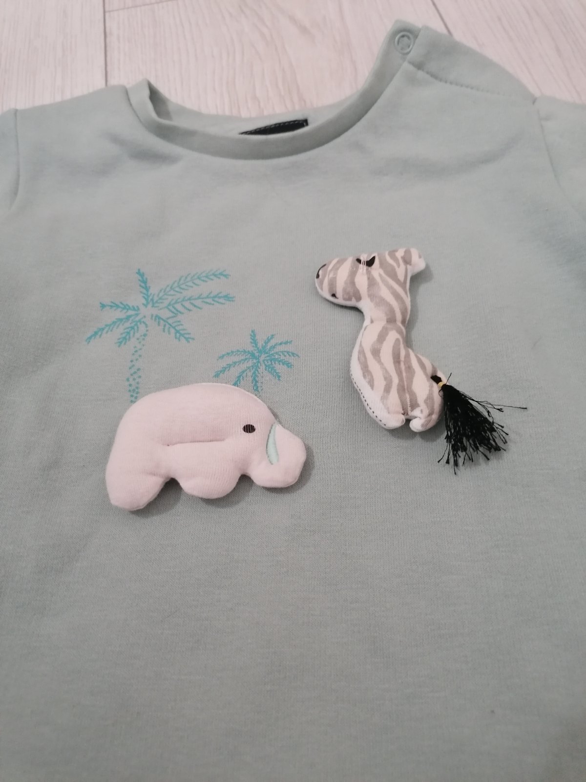 Super mikinka Reserved. Vidno už trosku nosenie, sem tam zmolky, ale podľa mna stále pekná a nositelna. Veľkosť písaná 98, ale skôr 92.