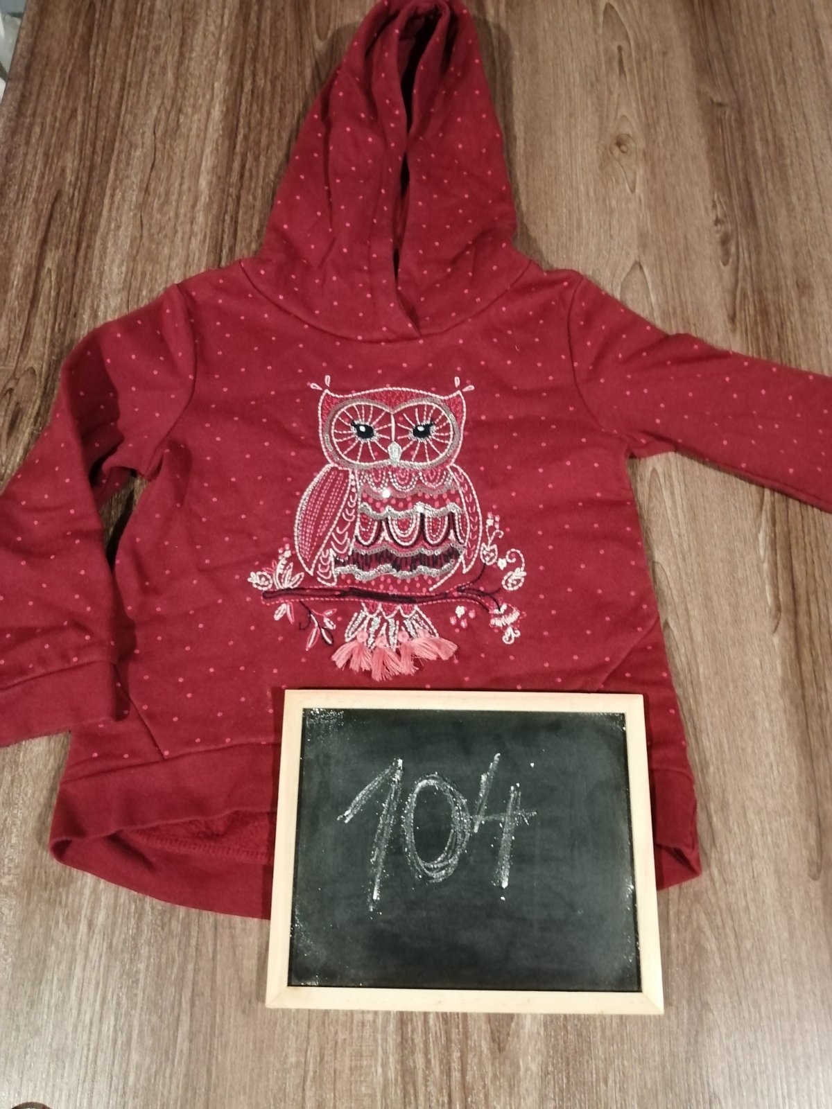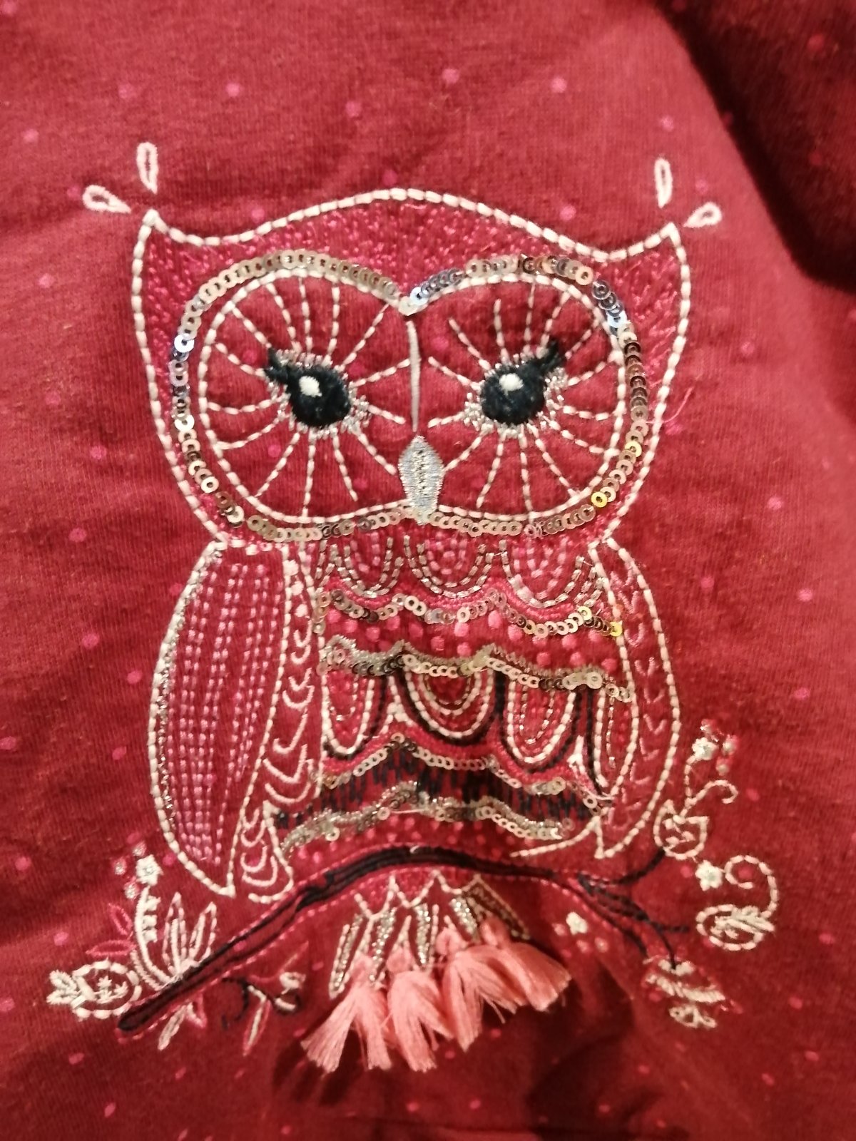 Veľmi pekná mikina so sovou, zadný diel predĺžený, bodkovana, dobre ukáže na postave. Dcérka ju mala obľúbenú.