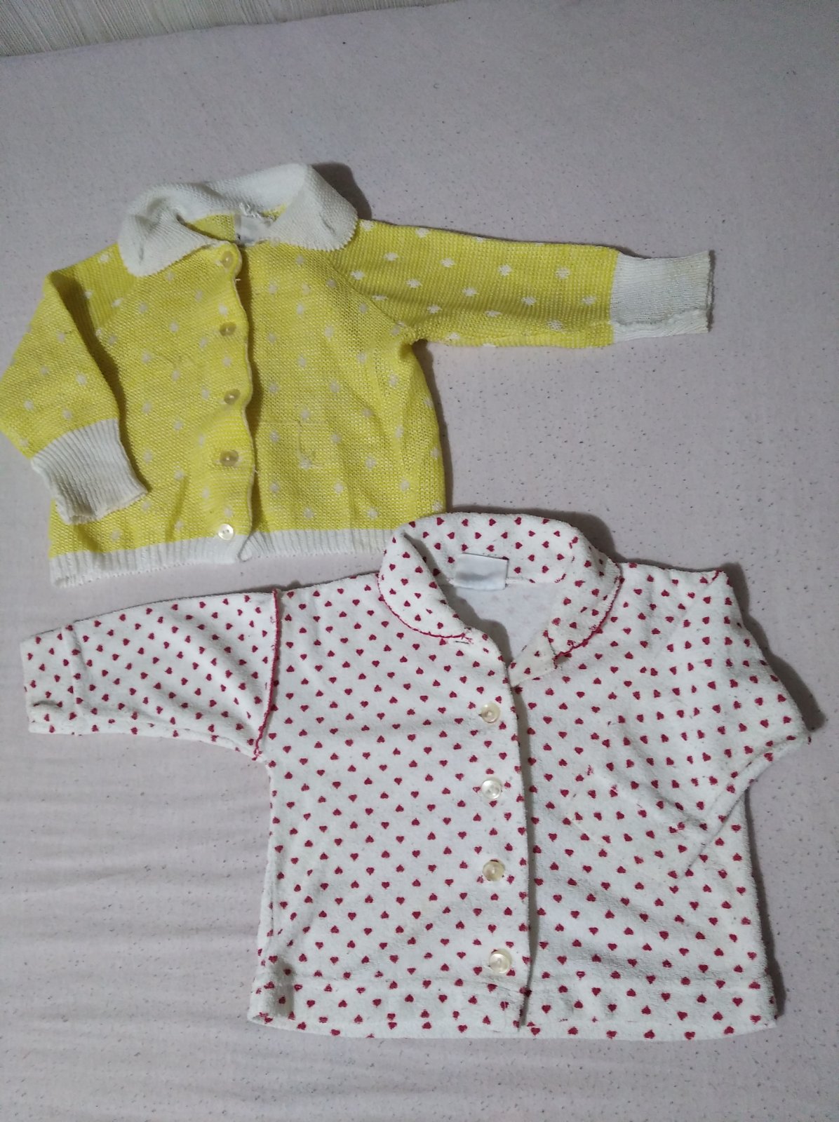 Detské svetríky - dĺžka cca 29cm, šírka 30cm. Na niektorých miestach zatiahnuté.
