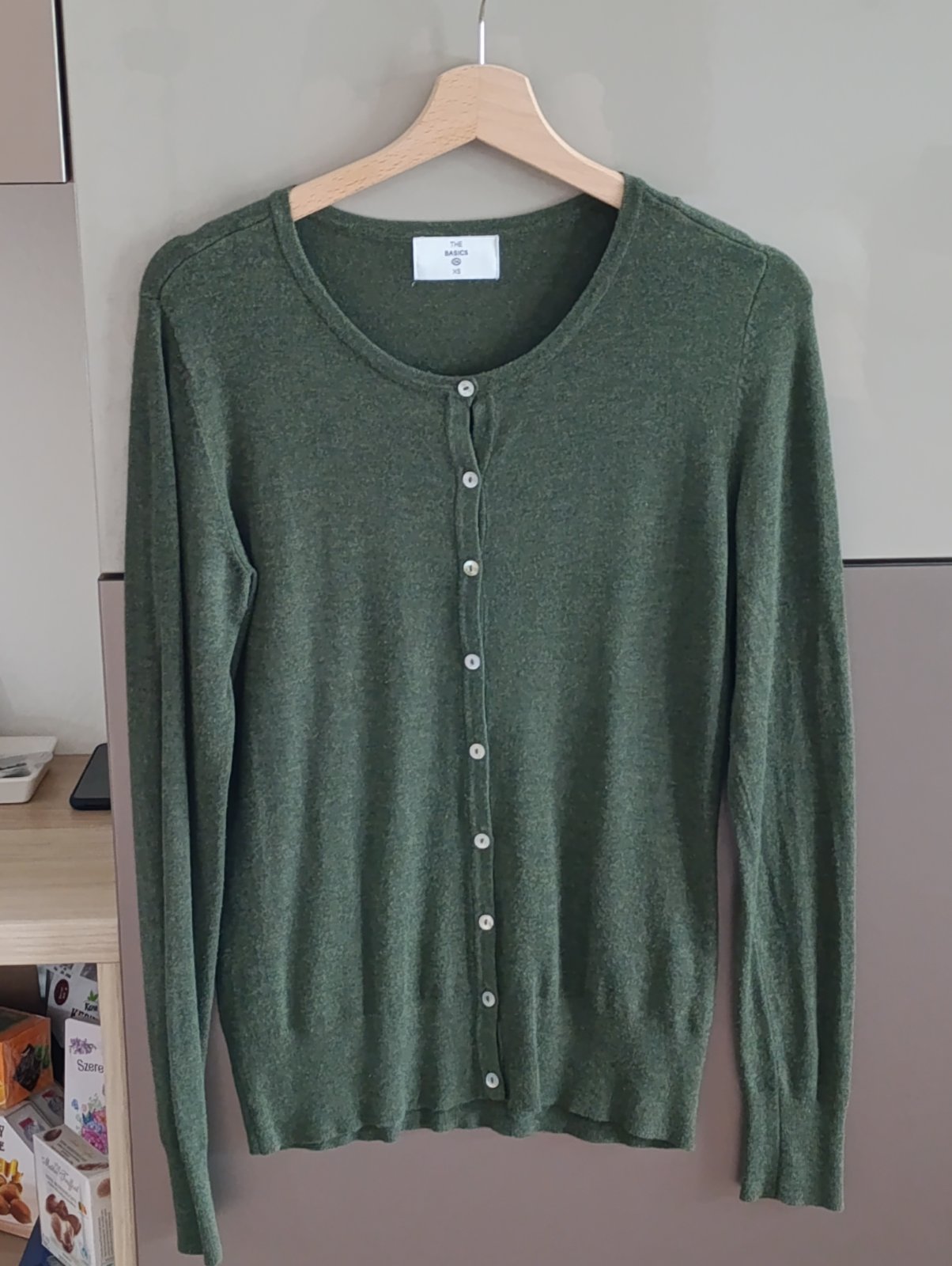 trendový svetrík, bez gombíkov. Rukáv od krku 62cm, rukáv od pleca 53cm, dĺžka 60cm. Bez chýb, sú vsite strieborné nite, aj na každodenné nosenie, aj na slávnostné príležitosti. Na štítku je veľkos...