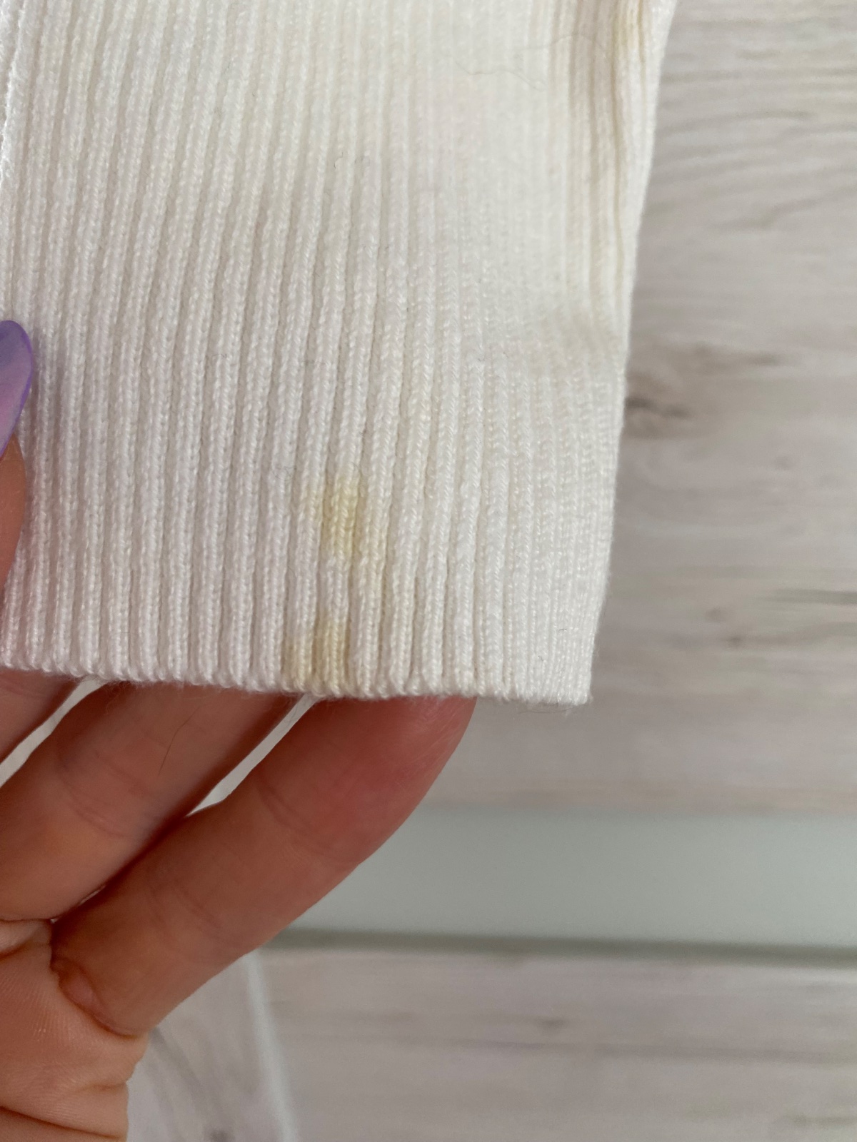 Nosený minimálne, veľkosť 134/140, dole na rukáve ma malú žltú škvrnu pozri fotky