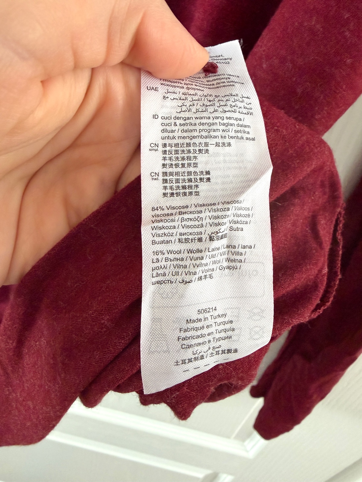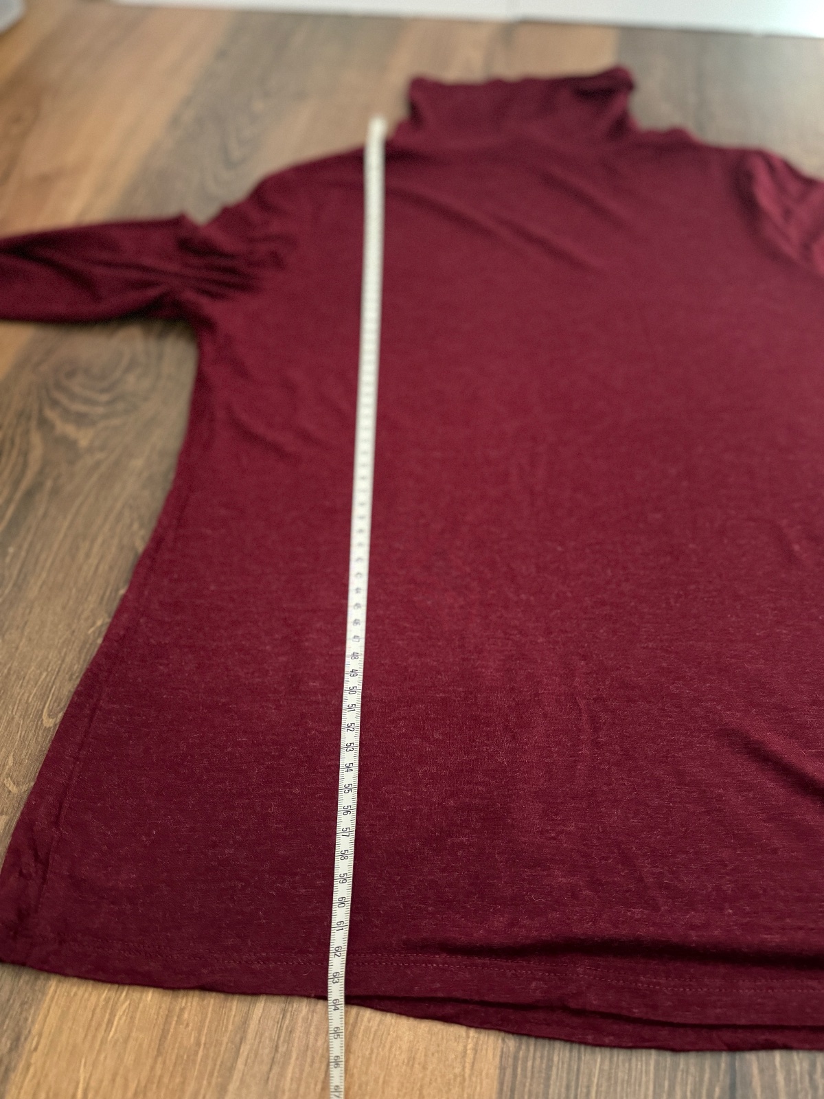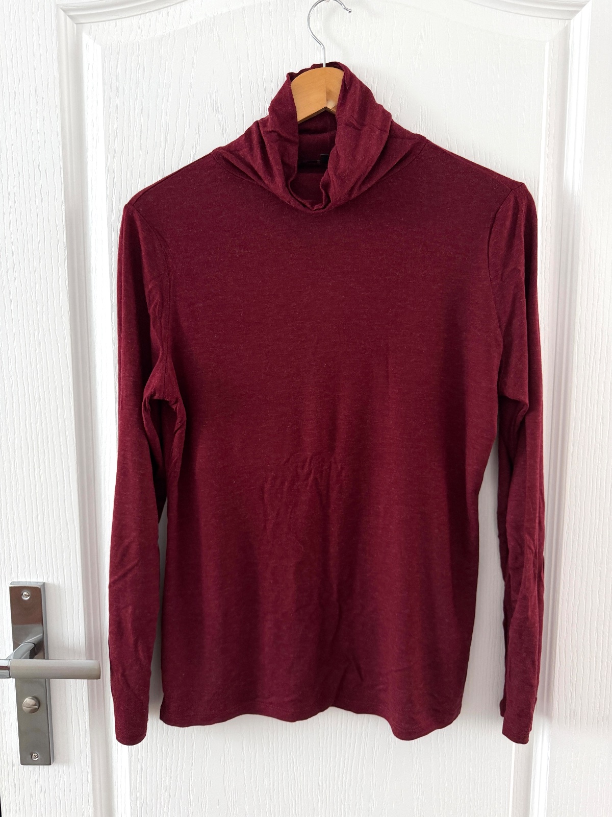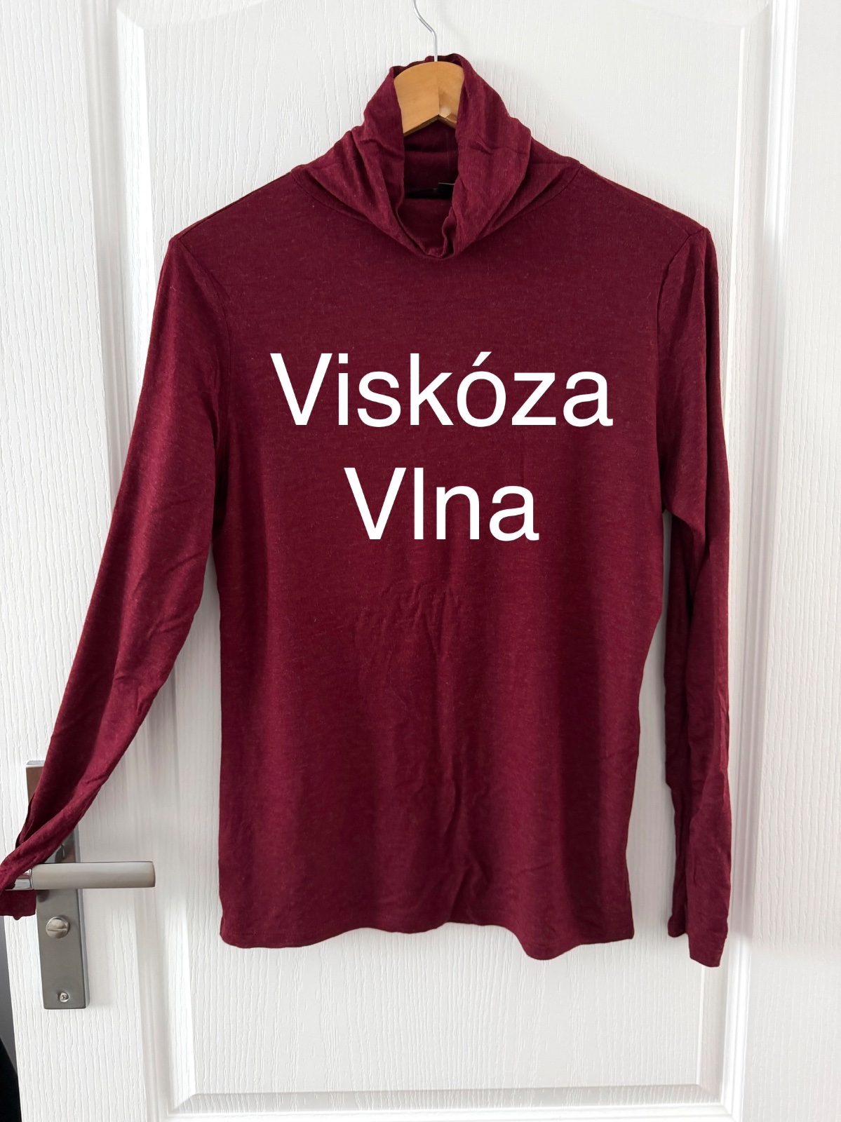Bordový rolák zo zmesi viskózy a vlny. Tento tenší sveter je vyrobený z 84 % viskózy a 16 % vlny. Je perfektný pod kardigan alebo košeľu. V kombinácii so sakom vytvorí perfektný pracovný outfit. Rolák je tenší, ale vďaka podielu vlny stále teplý. Veľkosť na etikete je M; všetky miery sú na fotografiách.