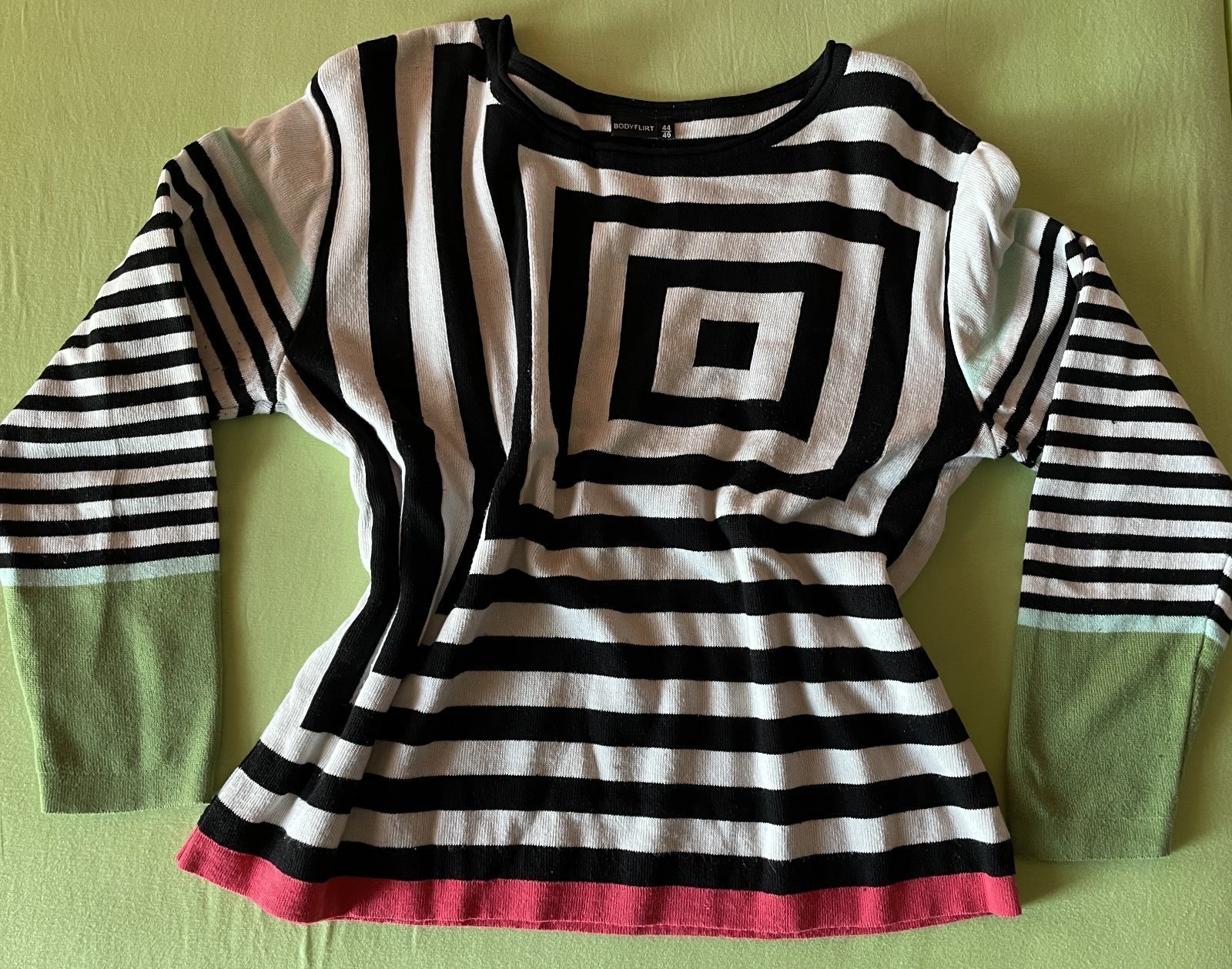 Dámsky svetrík značky Bodyflirt. Veľkosť 44/46. Dĺžka 59 cm, šírka v podpazuší 2x56 cm.