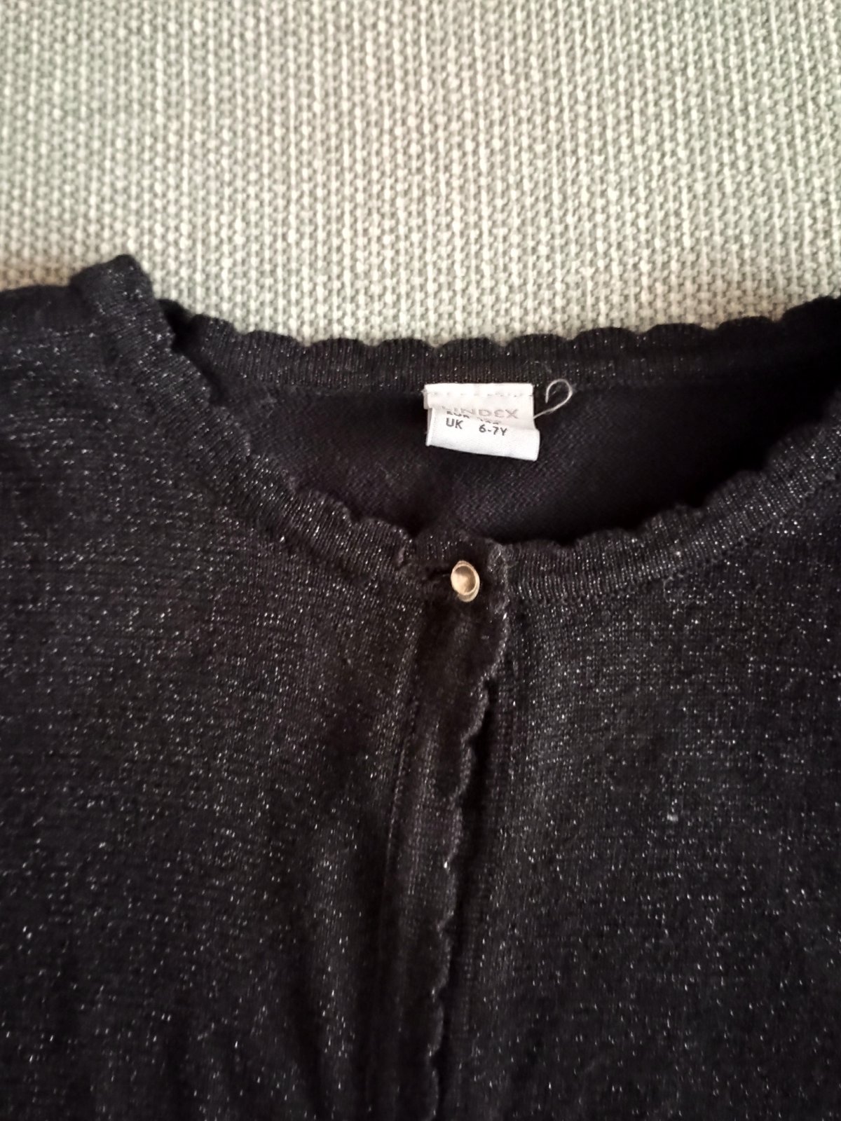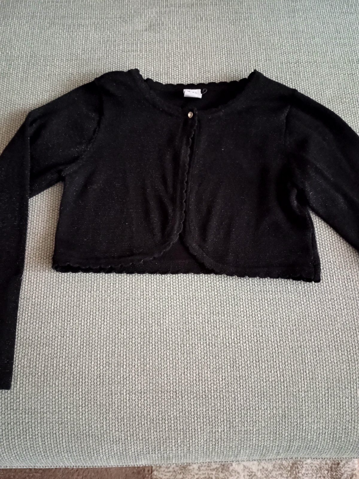 Bolerko bez jedinej chybičky. Bledo šede pretkavane striebornou nitou. Neslo to dobre odfotit. Mam k nemu aj Lindex čierne saty.