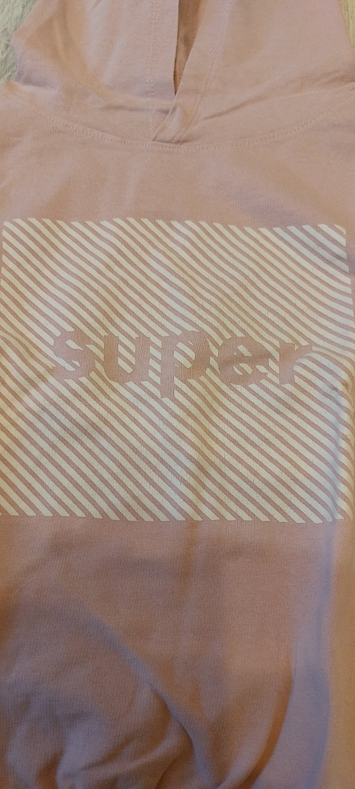 Mikina s nápisom Super. Odstrihnuta visacka.