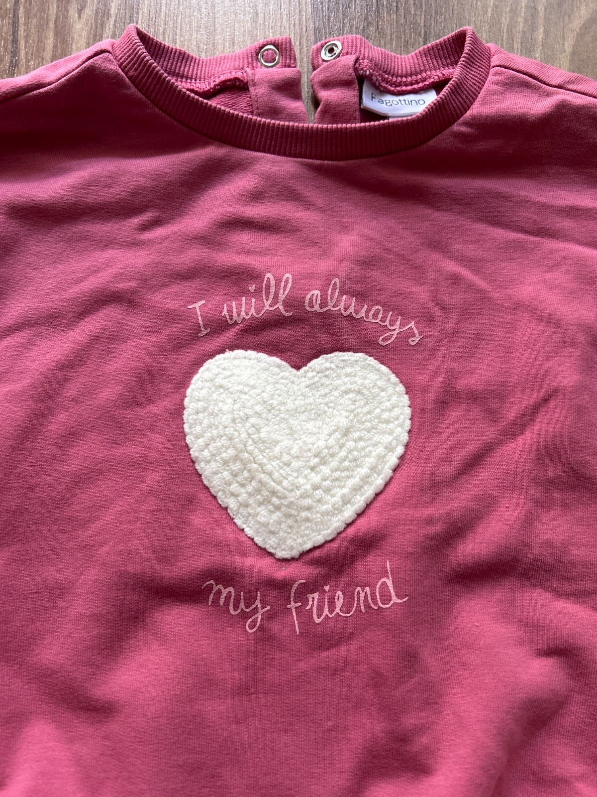 Krasna ruzova mikina Fagottino, 18-24M, dlzka 37cm, sirka podpazusia 31cm a rukav 30cm. Pekny noseny stav