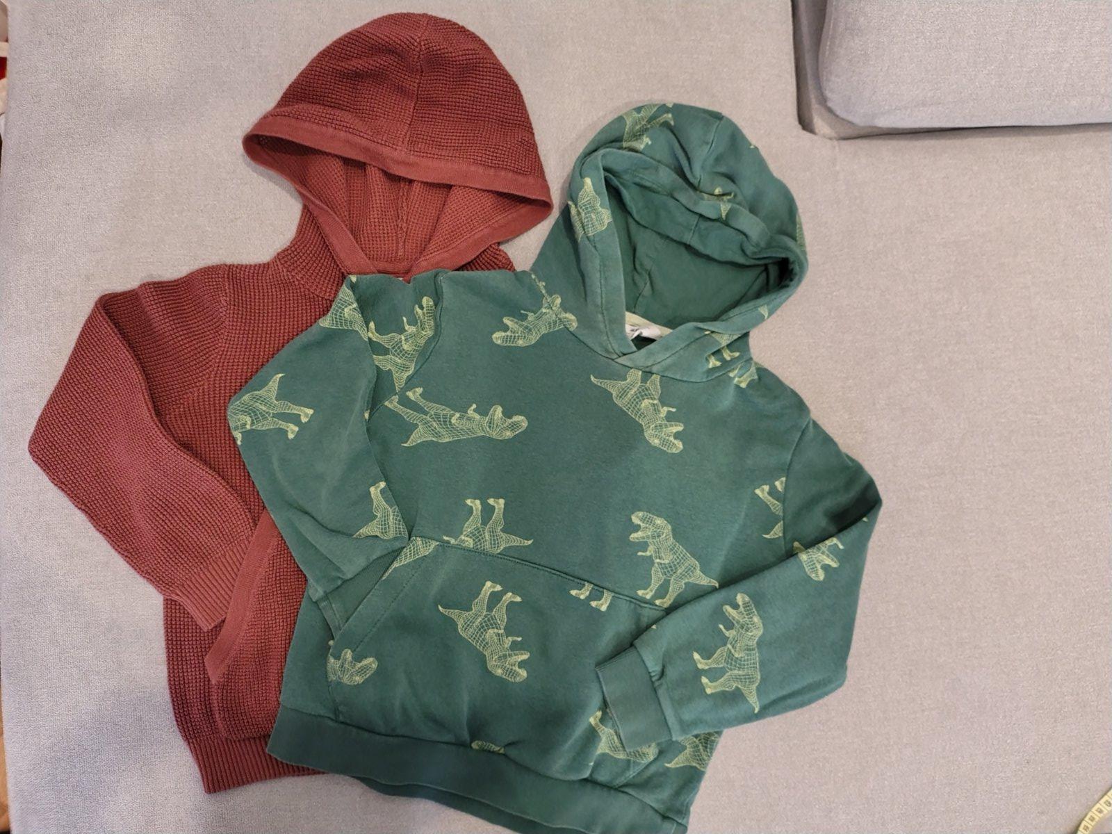 Mikina s kapucňou s motívom dinosaura, top stav akurát vpredu má trochu popísané, viď foto, možno pôjde vyprať. Veľkosť 7-8rokov.V