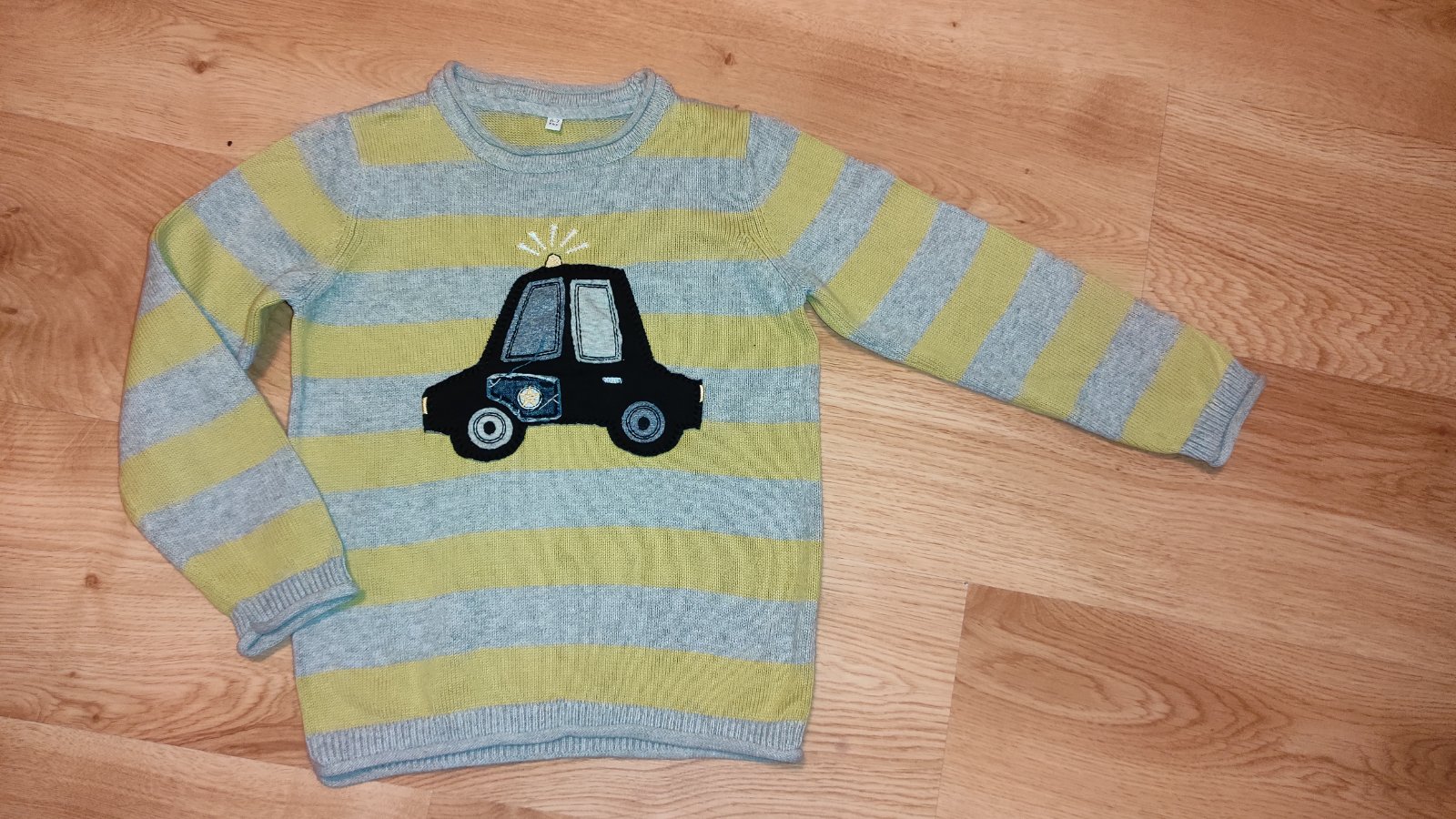 Ponúkam na predaj krásny pulovrik pre chlapca. Syn ho nosil rád ale len príležitostne, šetrili sme ho. Bez poškodení, bez zmolkov, krásny, aj sedí vyborne. Cena 8 eur.