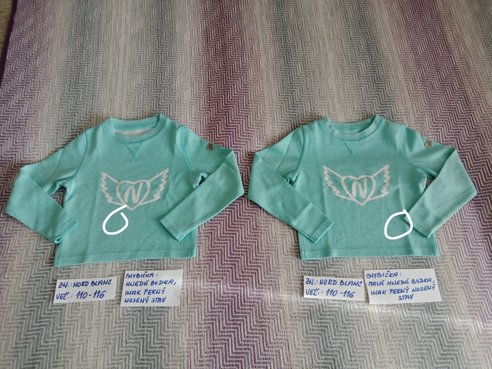 Detské mikiny zn.Nordblanc veľ. 110-116,na obidvoch mikina h je jedna malá hnedá bodka,inak sú v peknom stave.Cena za kus je 3eur.