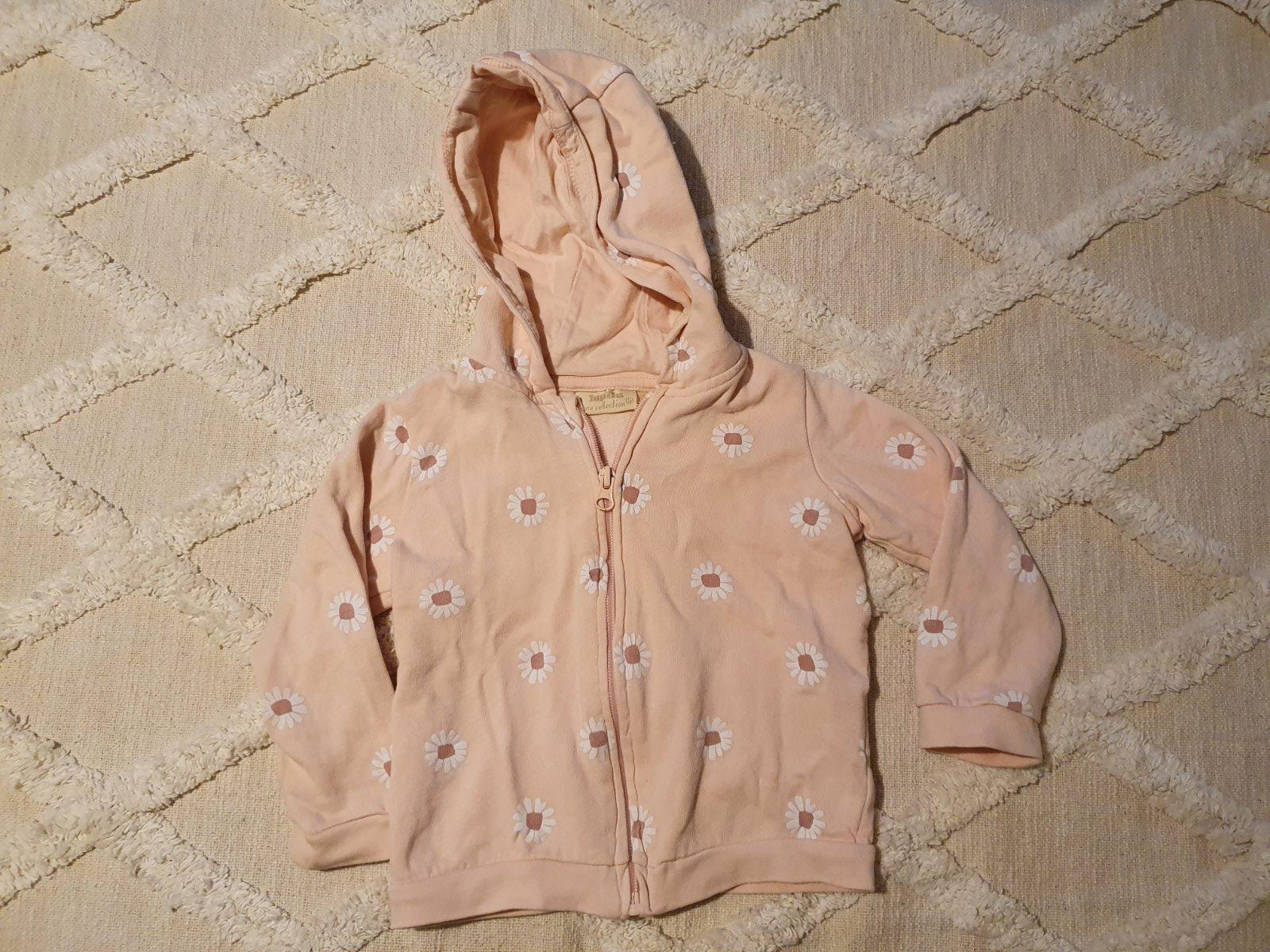 Bledoruzova, tepla mikina znacky Lupilu, vekost 86/92. Ma kapucku (zvnutra bledoseda), zapina sa vpredu na zips a po bokoch ma 2 sede vrecka s malymi uskami :)