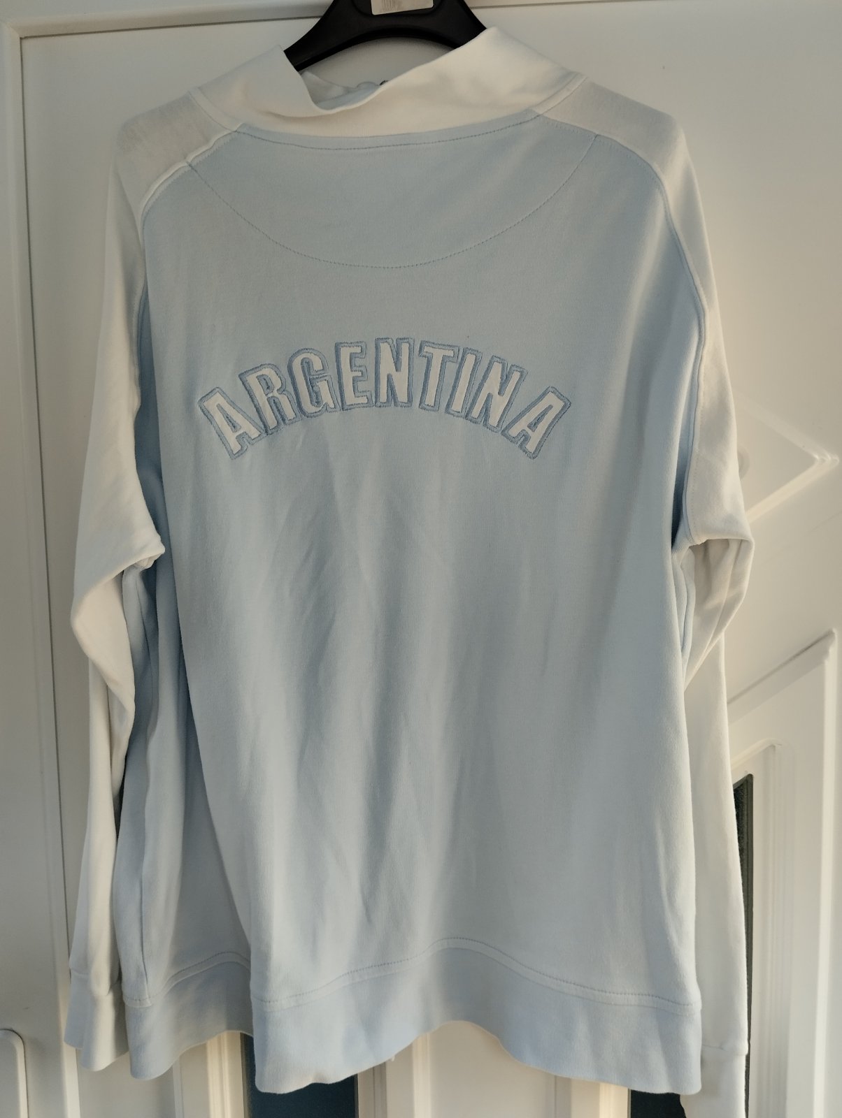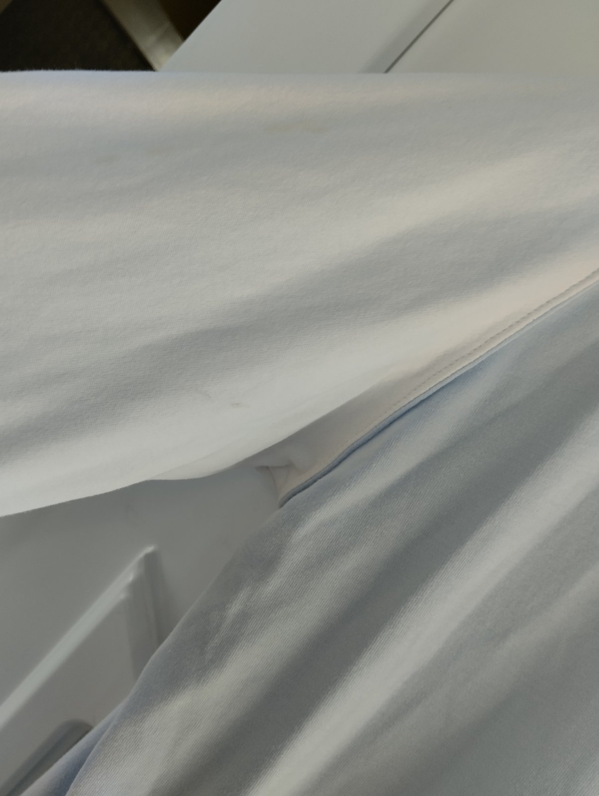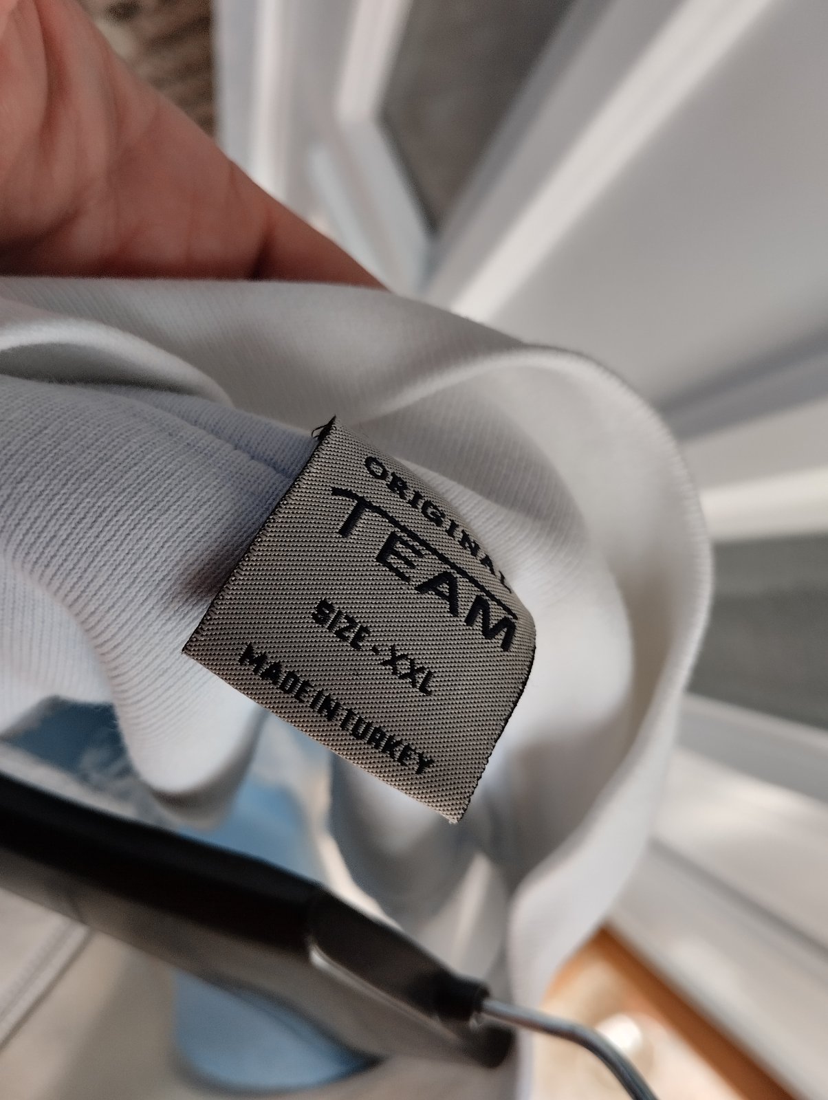 - nosena, prijemna bavlna, velkost uvedená XXL, ale je to skôr len XL, bez dier, len na rukave som našla svetložlté fliačiky - odfotene, na doma ešte v pohode poslužia