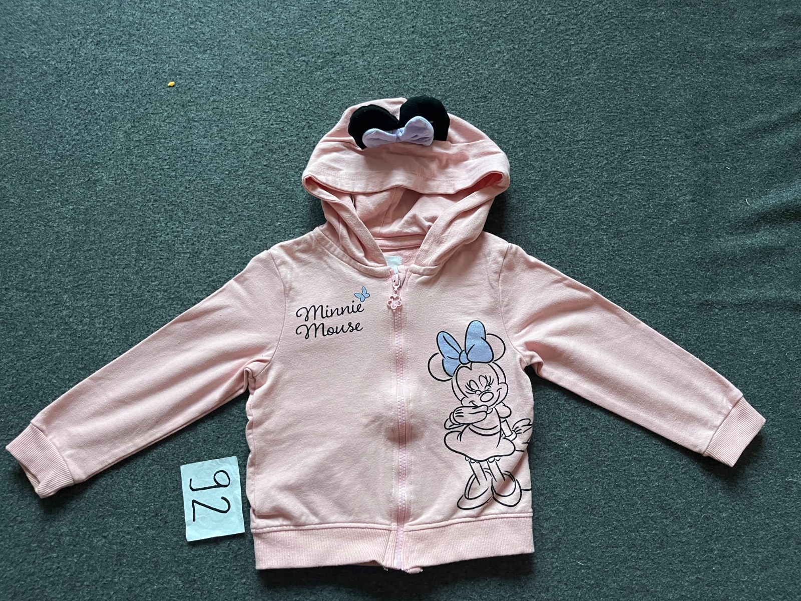 Asi 2x oblečená mikina na zips s kapucňou Minnie. Top stav. Veľkosť 92