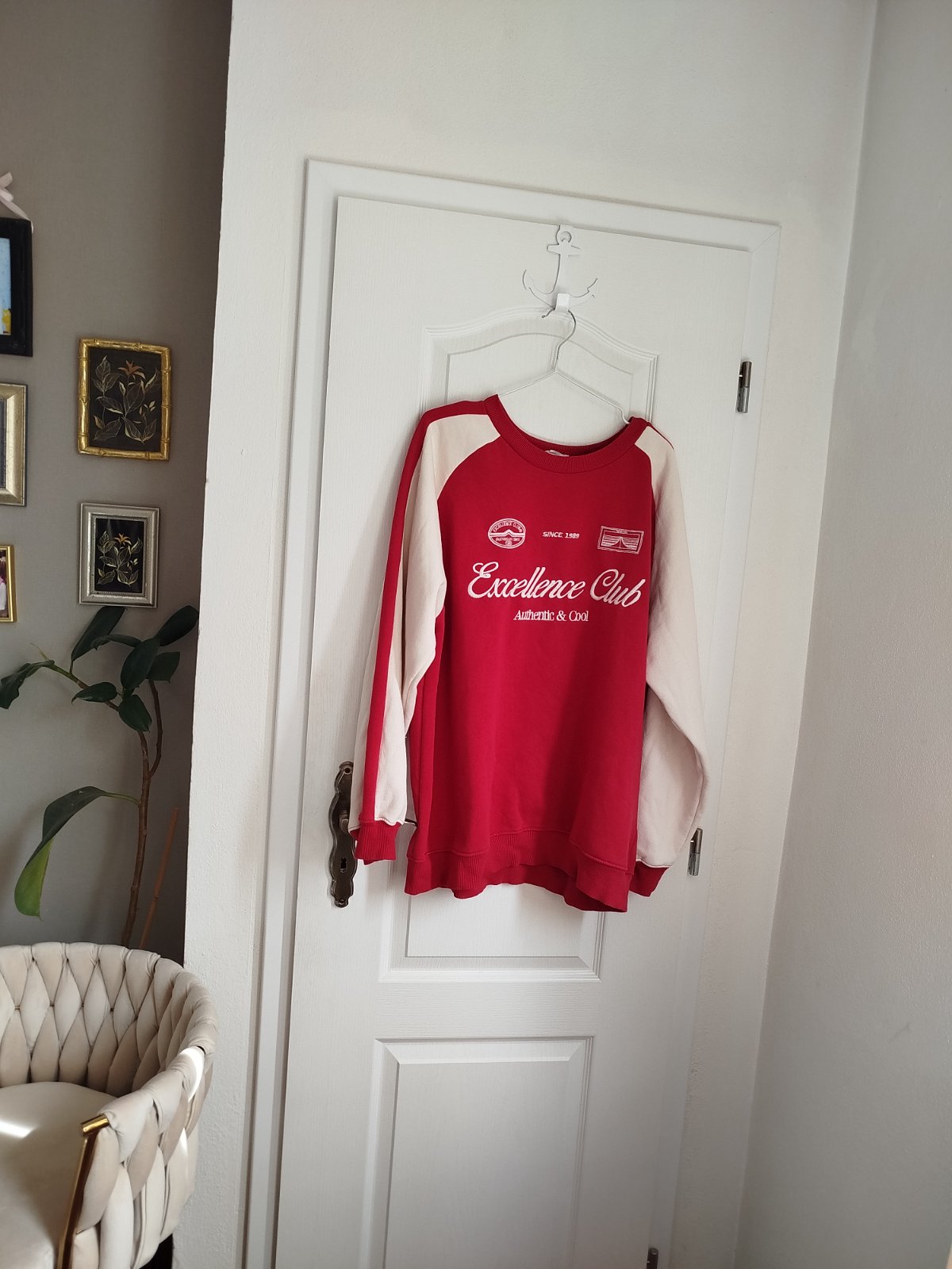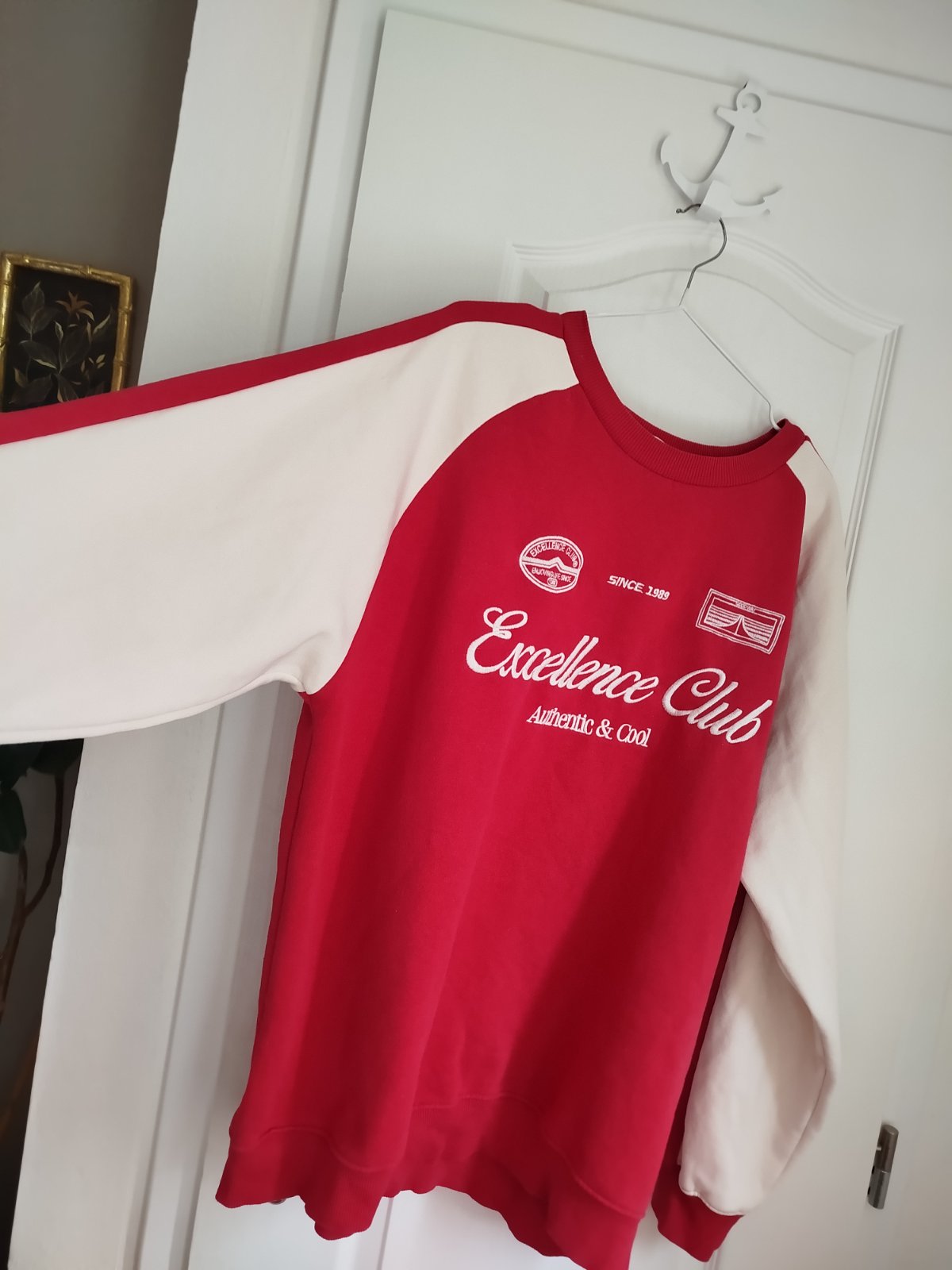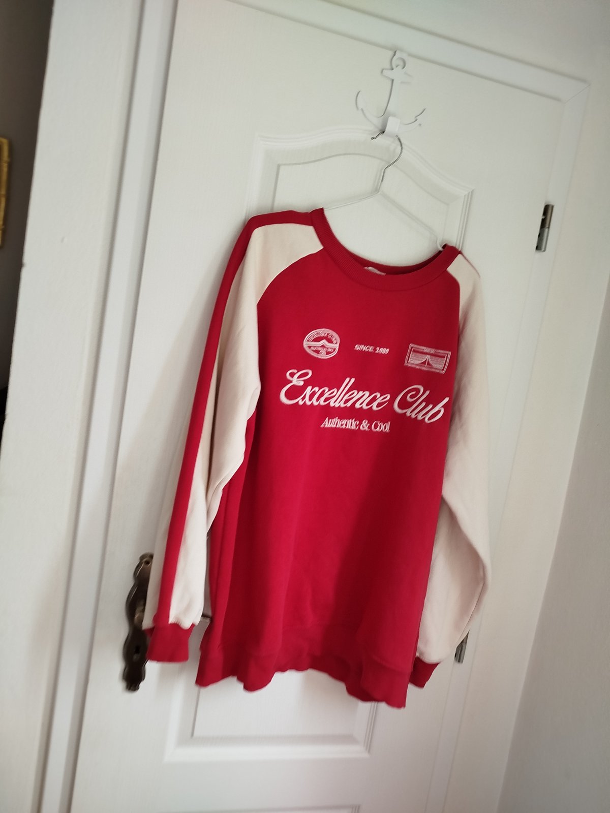 Červeno krémová oversize mikina píšu c.L je taký voľný štýl malo nosena dĺžka 74cm šírka pod pazuchami 64x2cm.