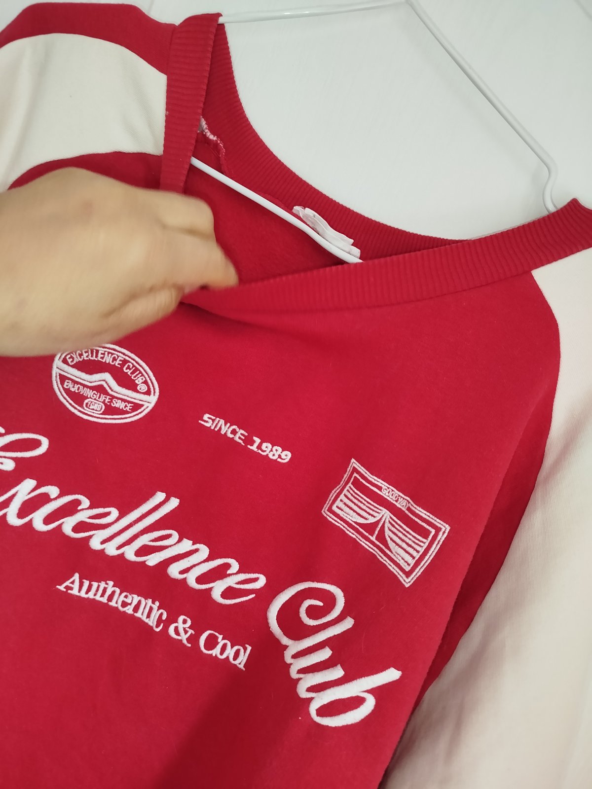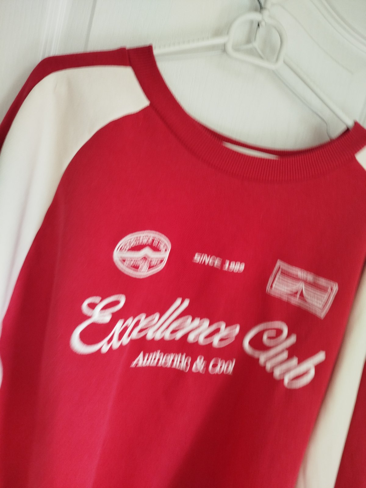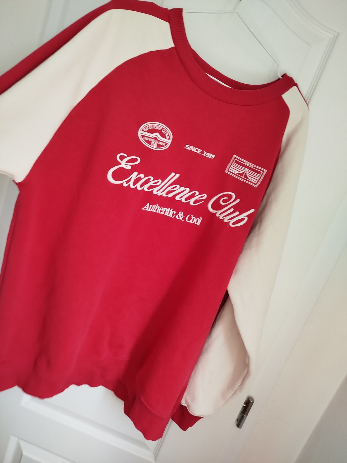 Červeno krémová oversize mikina píšu c.L je taký voľný štýl malo nosena dĺžka 74cm šírka pod pazuchami 64x2cm.