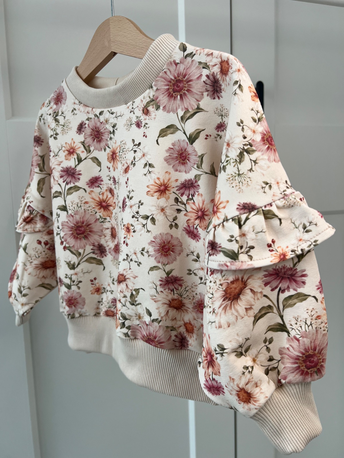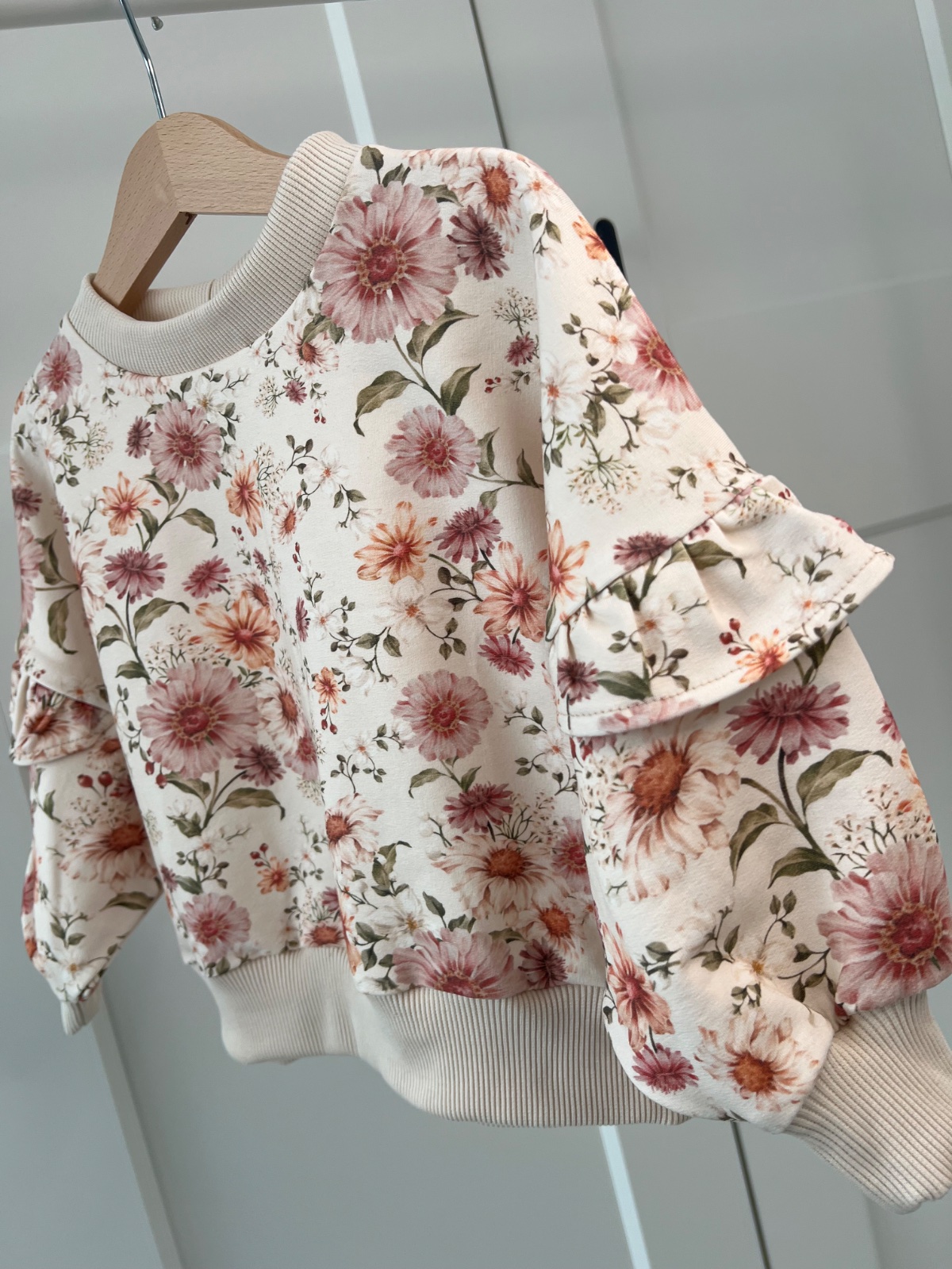 Dievčenská mikina s kvietkami a volánikmi