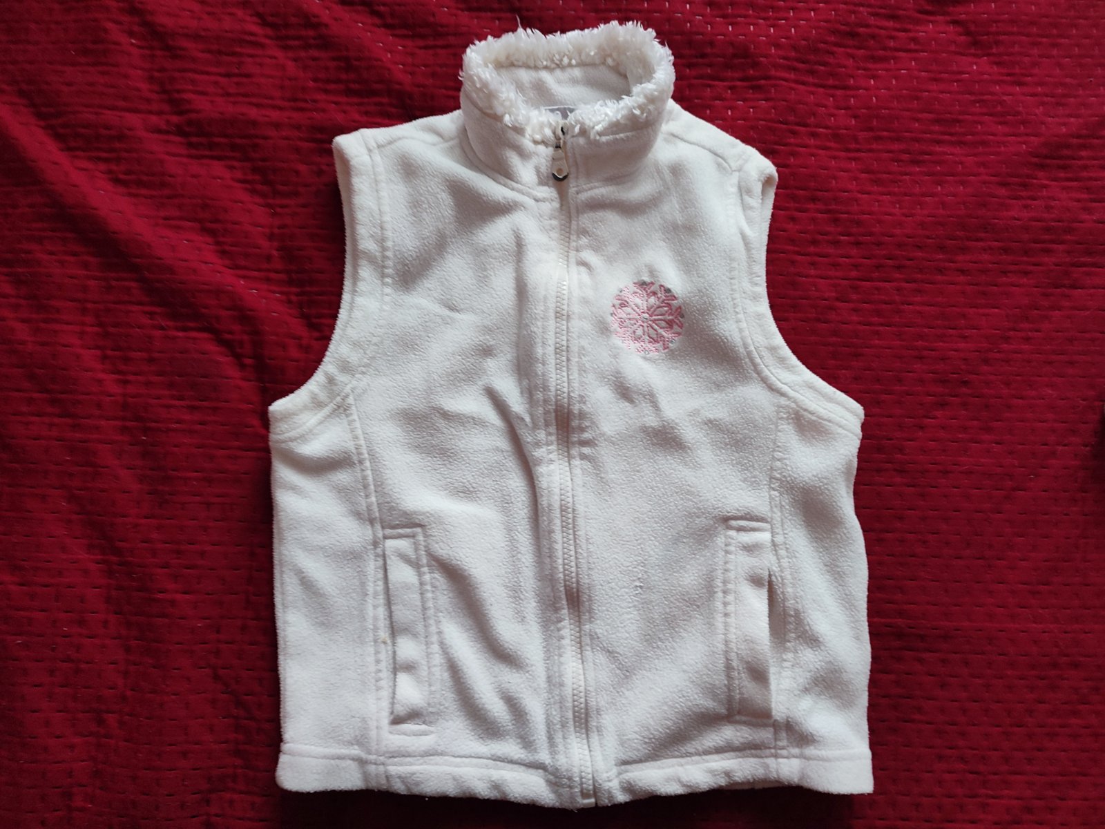 Predám, krásny nosený stav, nájdu sa žmolky. Kožušinka príjemná jemná. S vreckami. Veľkosť uvedená 134 ale menšia. Rozmer na fotke.