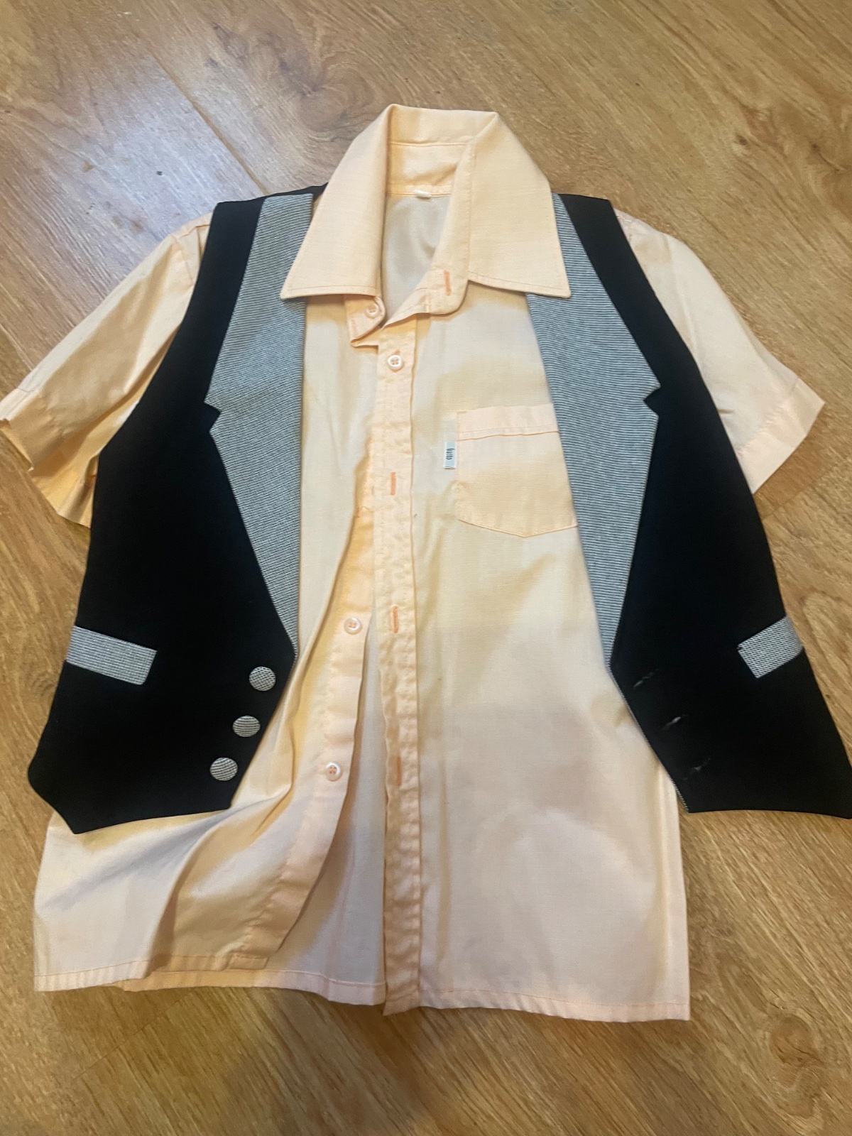 Ptedam v tóp srave detsku vesticku velkist 122 cena 5€ košielka grstis