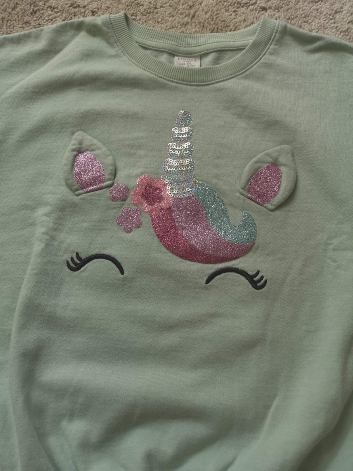 Pekná mikinka s aplikáciou jednorožca. Bez poškodení.