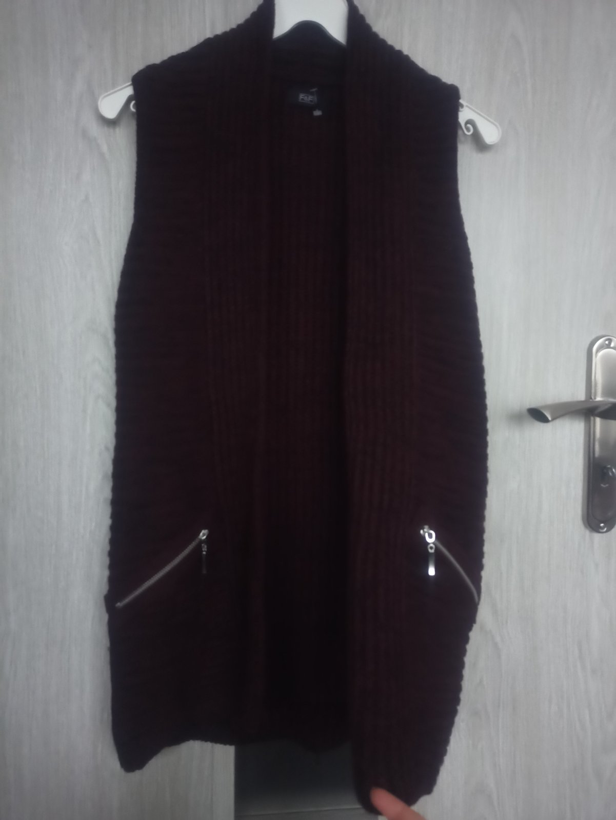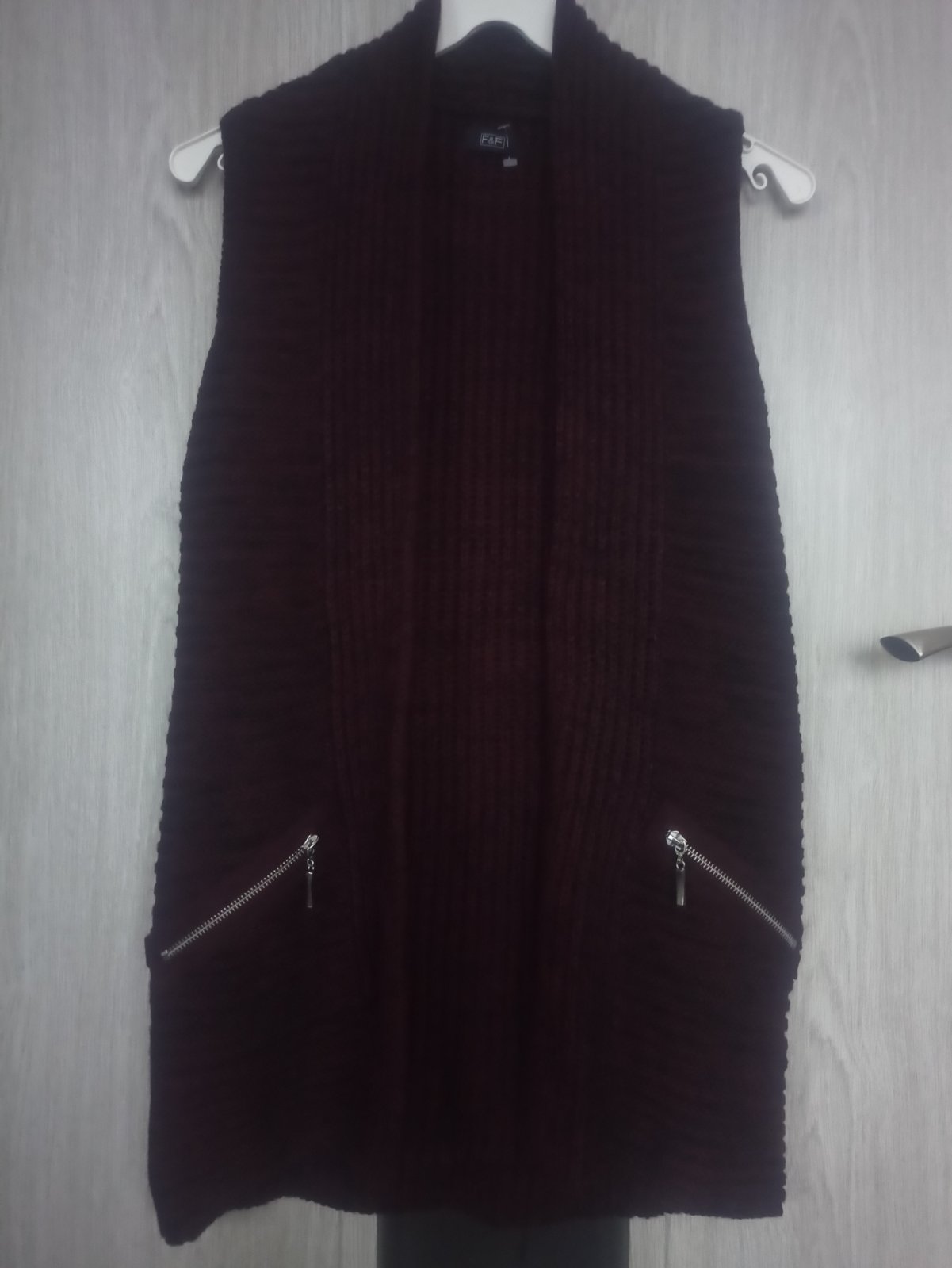 94ja. bordova vesta, velk. S, tenka, dlzka 55cm, cez prsia 41x2cm
