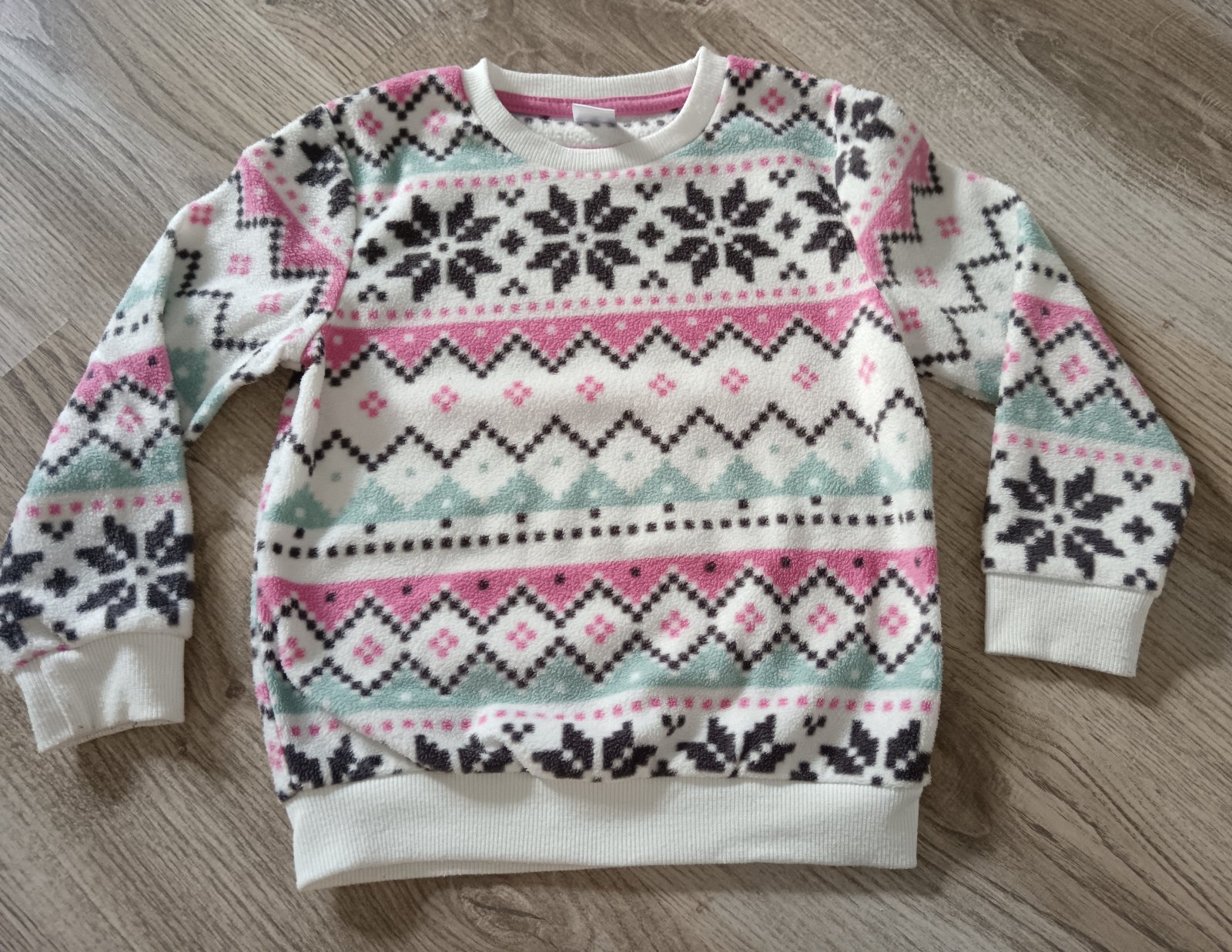 Krásny svetrik pre milovníčky zajačikov, dcerkin obľúbený, takze sú známky nosenia, jemne zmolky na rukávoch, písaná veľkosť 116 je to taká 110/116