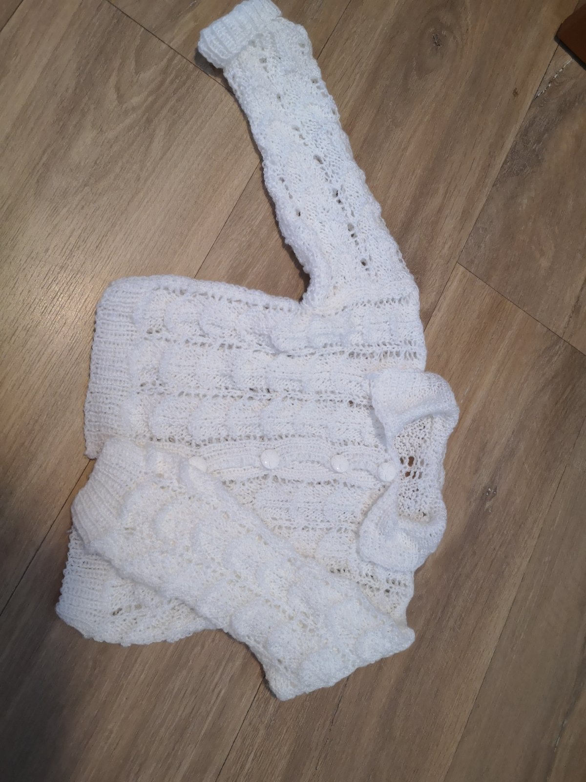 predám krásny štrikovaný biely svetrík pre malú parádnicu. Veľkosť na foto