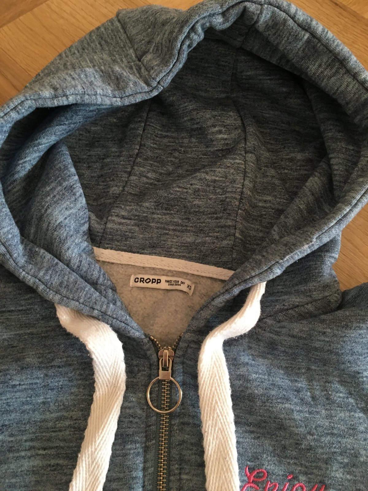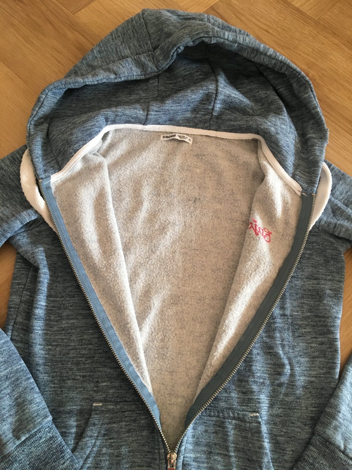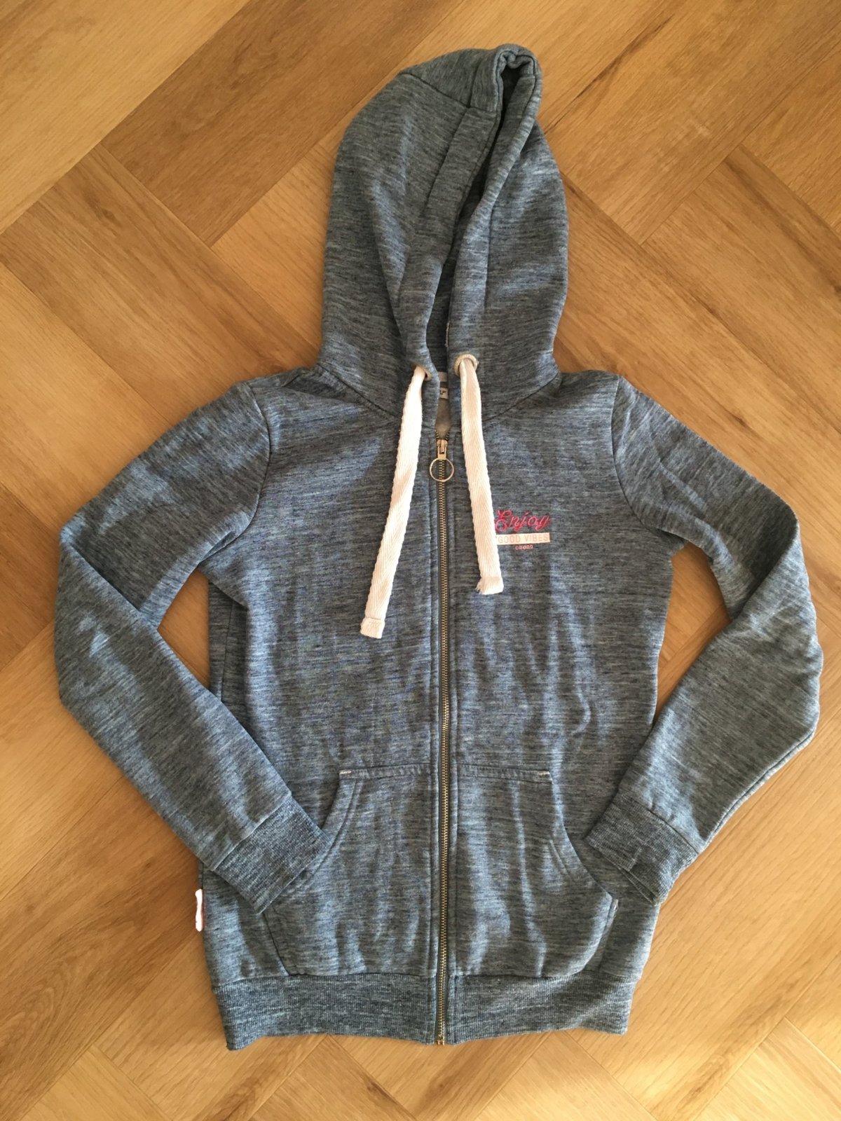 Predám mikinu s kapucňou v modrosivej farbe. V prednej časti sú umiestnené dva vrecká. Je bez akéhokoľvek poškodenia a opotrebovania, keďže je nosená minimálne.