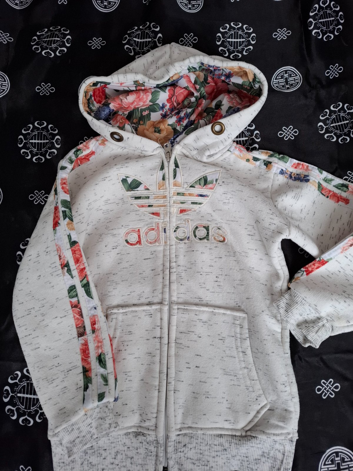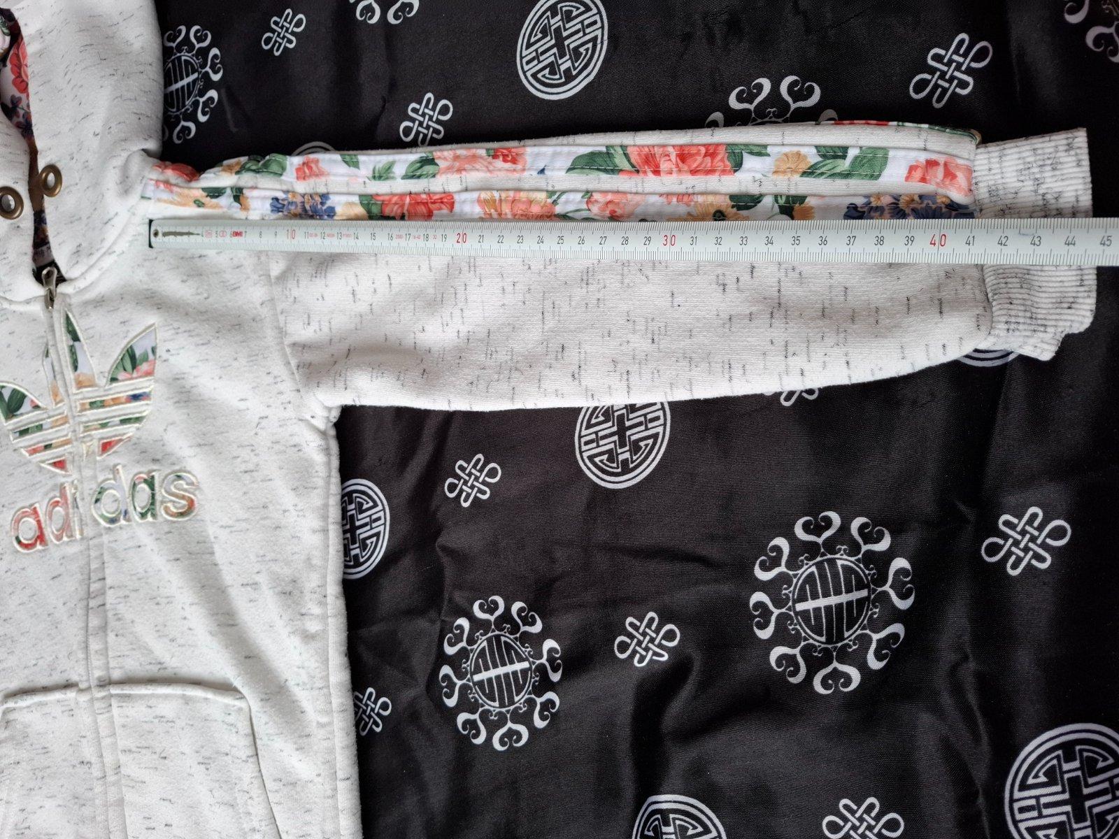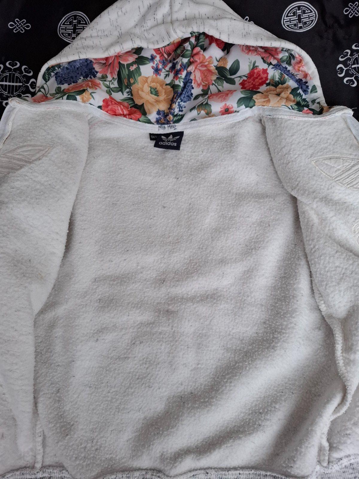 Málo nosená, menšia ako je písaná veľkosť, preto dávam 128, rozmery na foto. V super stave, neviem či bola šnúrka v kapuci, kapuca pevná. Super kombinácia farieb, pekne ukáže.