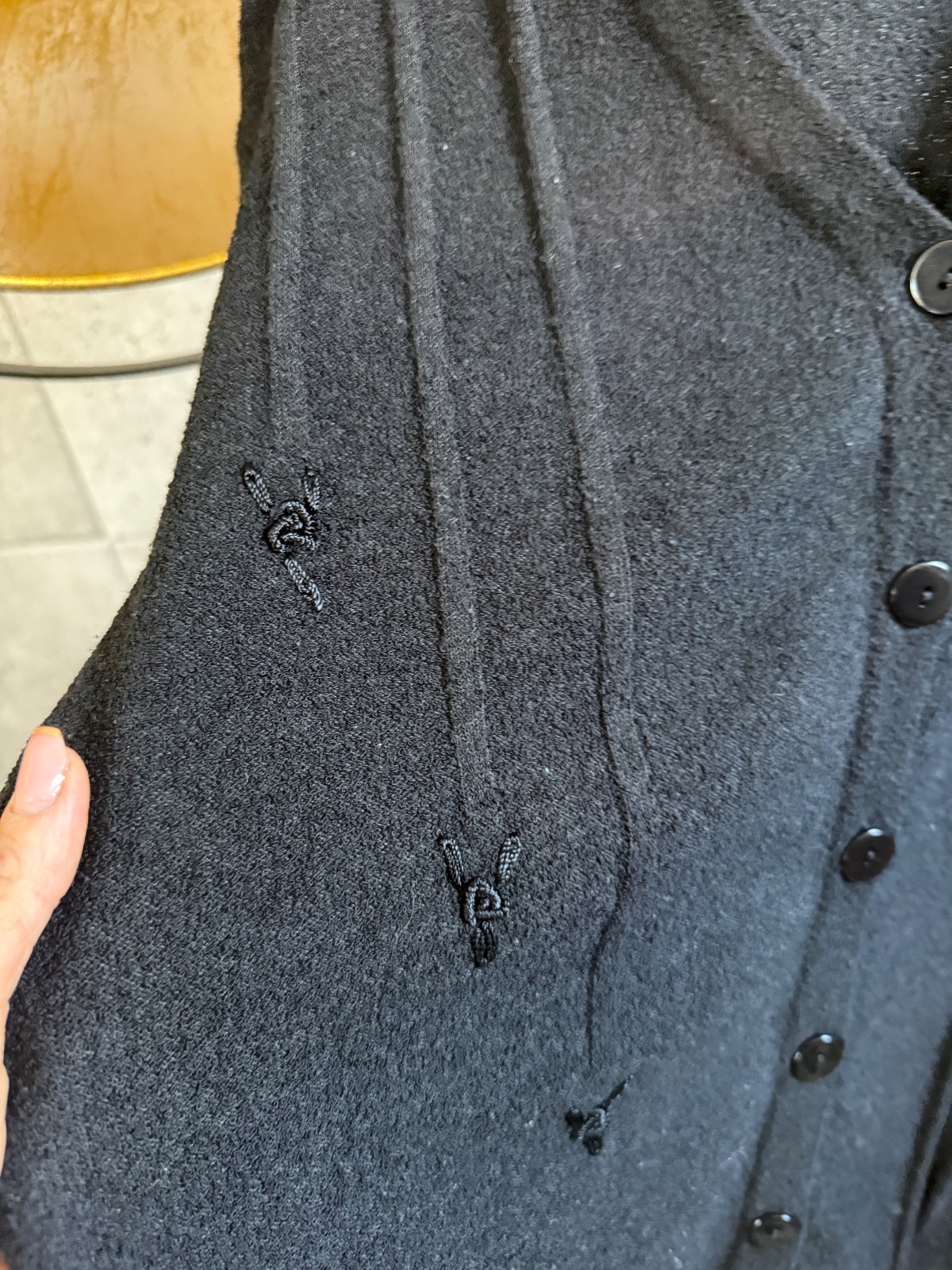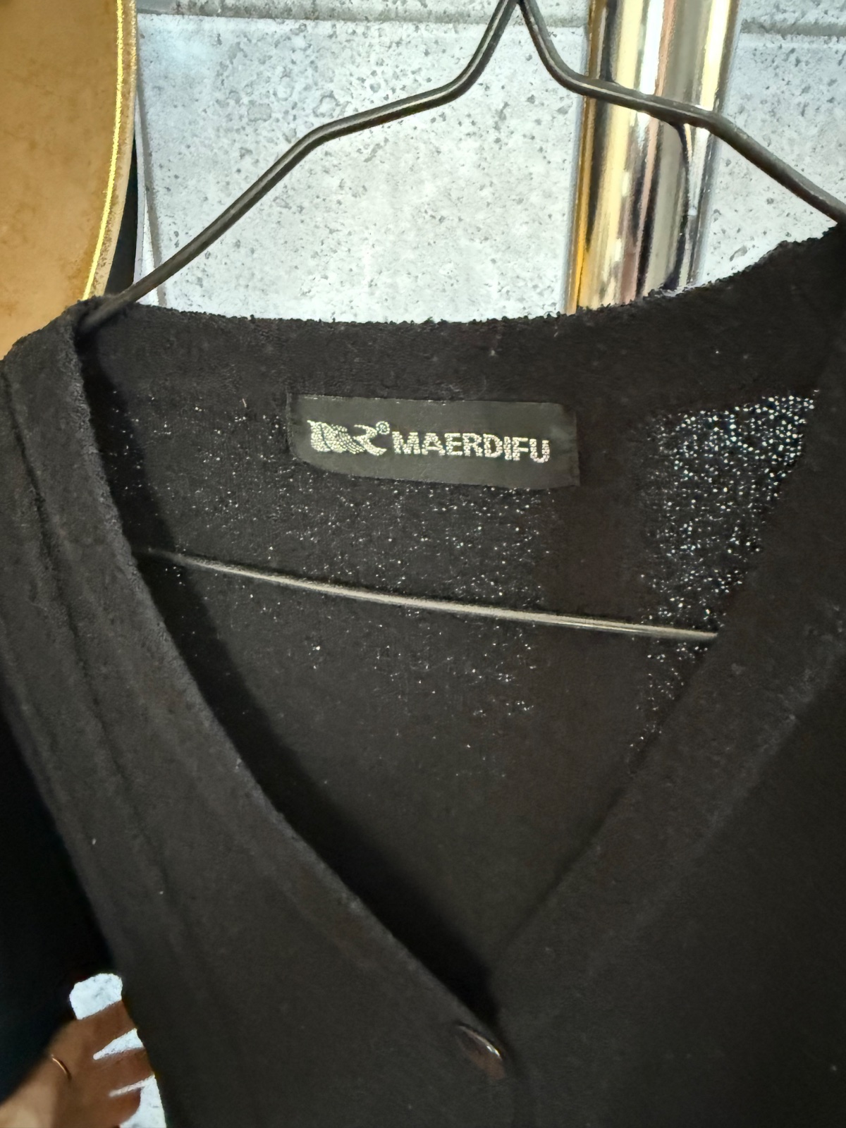 kúpený tu na MK...mnou neniseny...pridávam popis predchádzajúcej mamičky 😊 siroky strih, krasny padavy a elegantny, pretkavany striebornou niťou. kvôli strihu bez premerania, je fakt dost univerz...