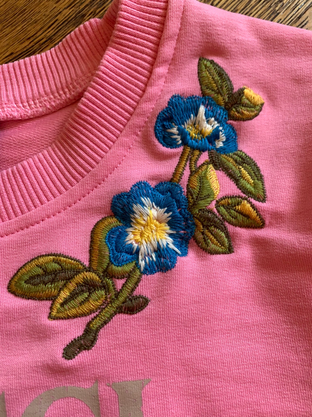 Krasna mikinka, replika 1:1, je menšia ako je pisane. Pozri miery. Super materiál ktorý nerobí zmolky. Kombinácia nazehlovacky ktorá je popukana original!! a kombinácia výšivky. Je prekrásna. Top stav. Oblečená asi dva krát. Tolko sme ju šetrili až dcérka vyrástla.