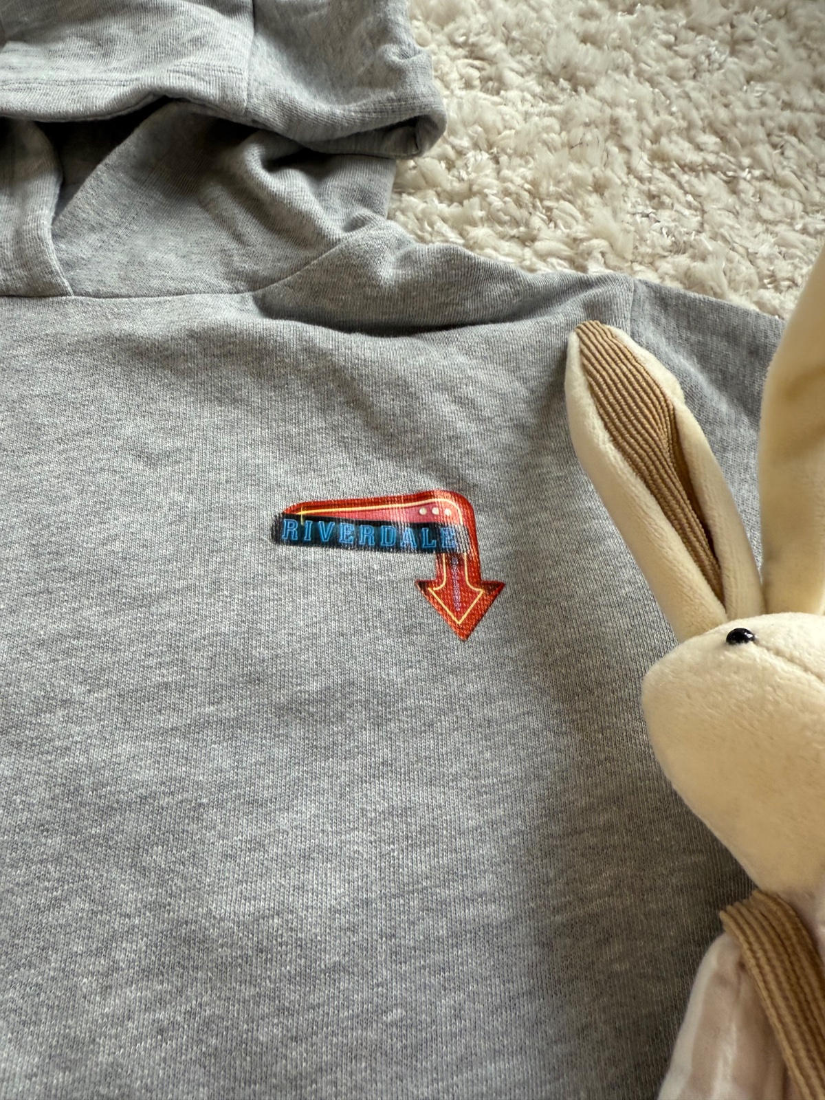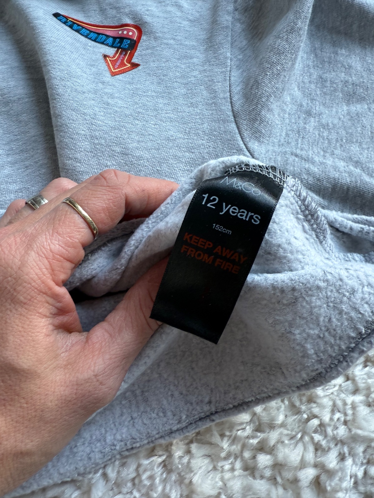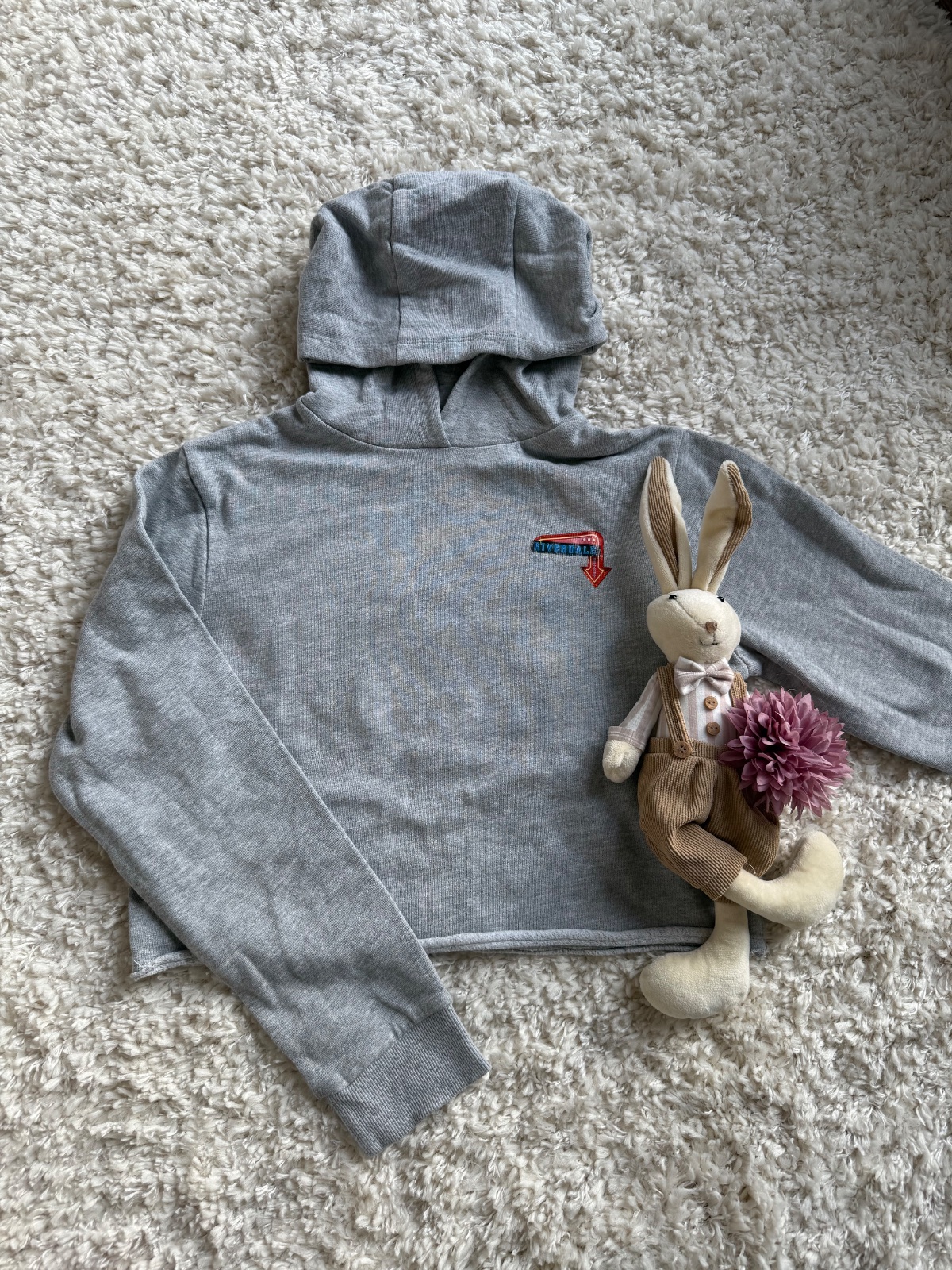 Pekná mikina s výrezmi a s aplikáciou. Na 10-12 rokov.