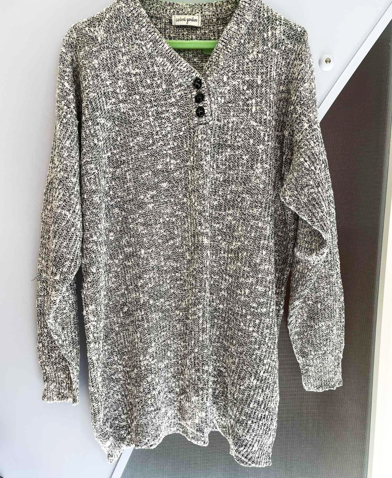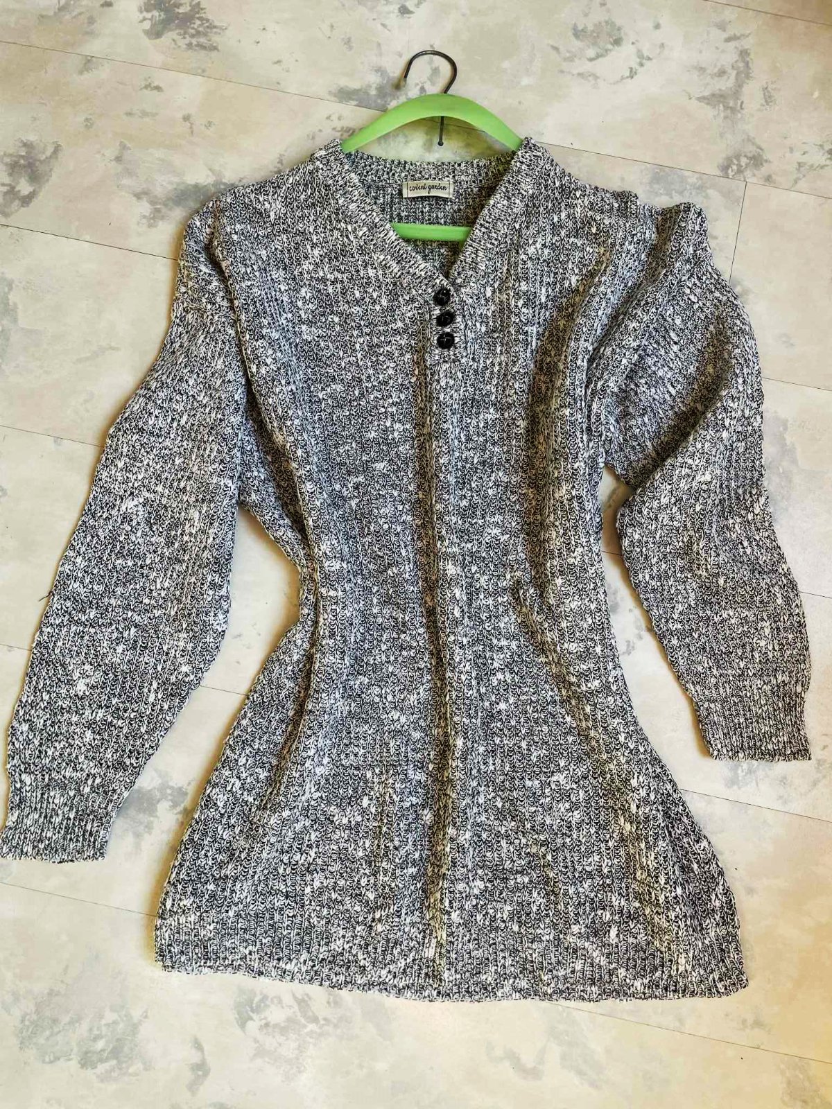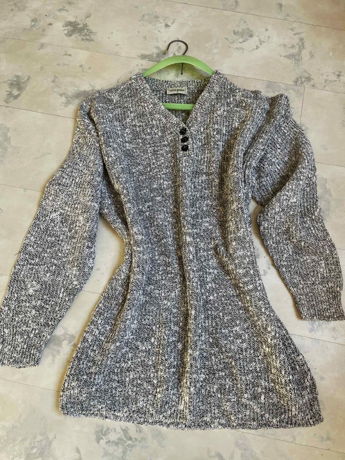 kvalitný mohutný jesenný dlhý pulóvrik,moderný štýl,uzlíčkový melír,nosí sa voľný - ako over size ,krásna úprava pleteniny,dostatočne dlhý,aj ku legínam a nohaviciam,top stav a kvalita,materiál vyfotený : 50% bavlna, 50 ranie (ľan),uvedená veľkosť L - ale je to skôr na XLXXL,šírka prsia = 70 x 2 cm, dlžka celkom = 75 cm,dlžka od pazuchy dole =59 cm, ramená = 22 cm, rukáv / vonk. dlžka / = 53 cm - tzv. spadnuté rukávy bez prieramku