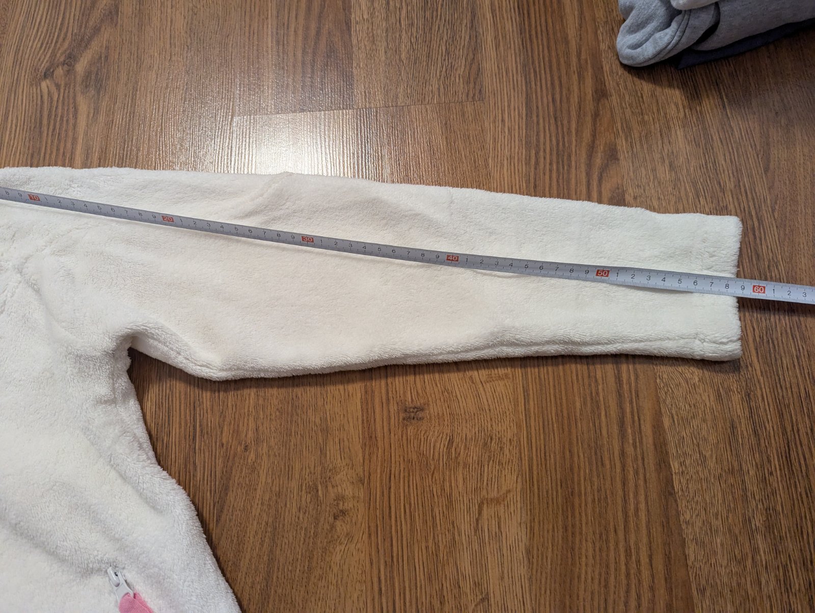 Flísová mikinka, šírka v páse 2x37 cm, dĺžka rukáva od krku 53 cm.