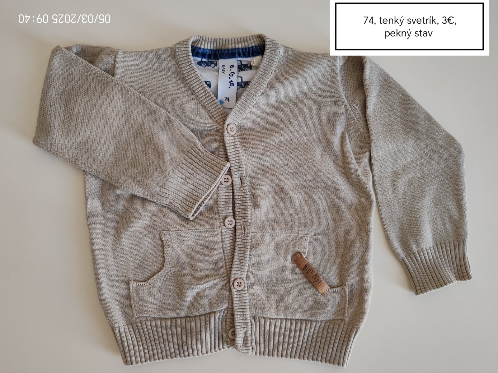 Chlapcenska mikina na zips,velkost 74, cena 2 € + posta
