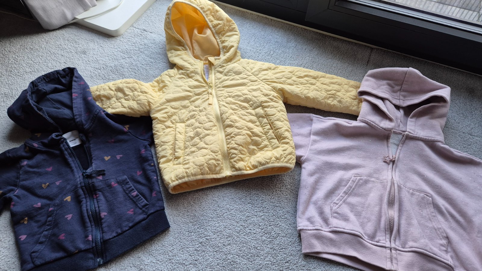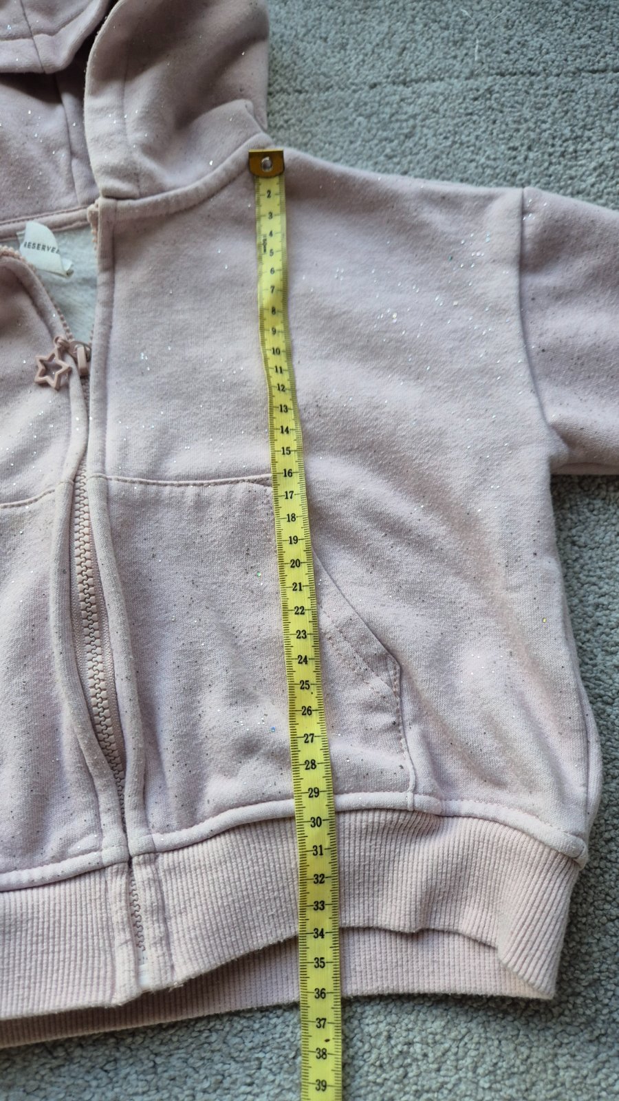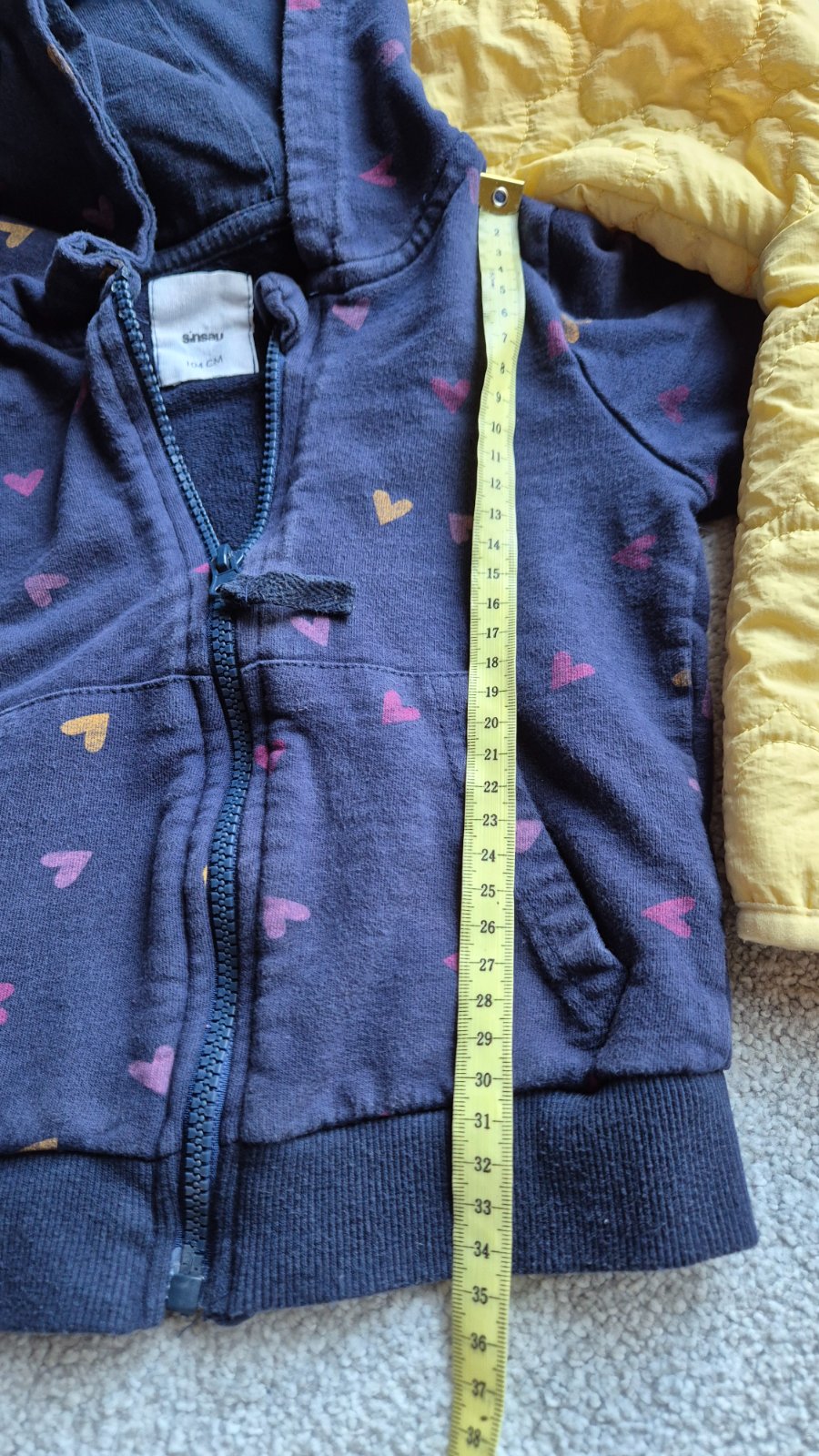 Posuvam po dcéra 1x jarnu/prechodnu bundu a 2x mikina ružova ma na sebe strieborne trblietky krasne sa trbliece na svwtlw značka reserved (pisana 110 ale je menšia takže 104), a tmavomodrá so srdiečkami.
