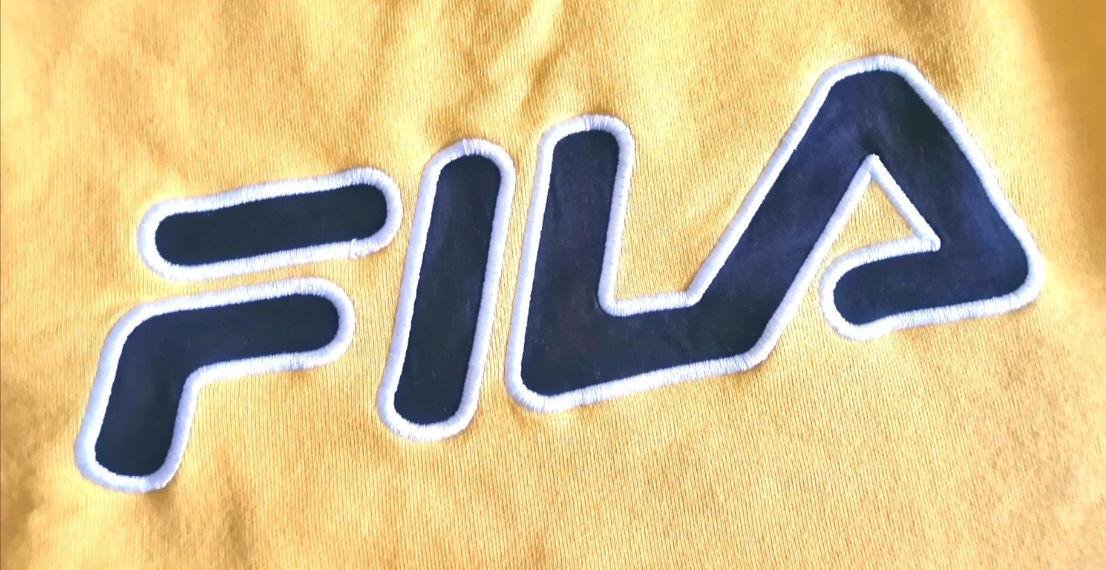 Pánska/chlapčenská športová mikina zn. Fila v príjemnej horčicovej farbe, vpredu aplikácia, obliekanie cez hlavu, veľ. S. Rozmery /