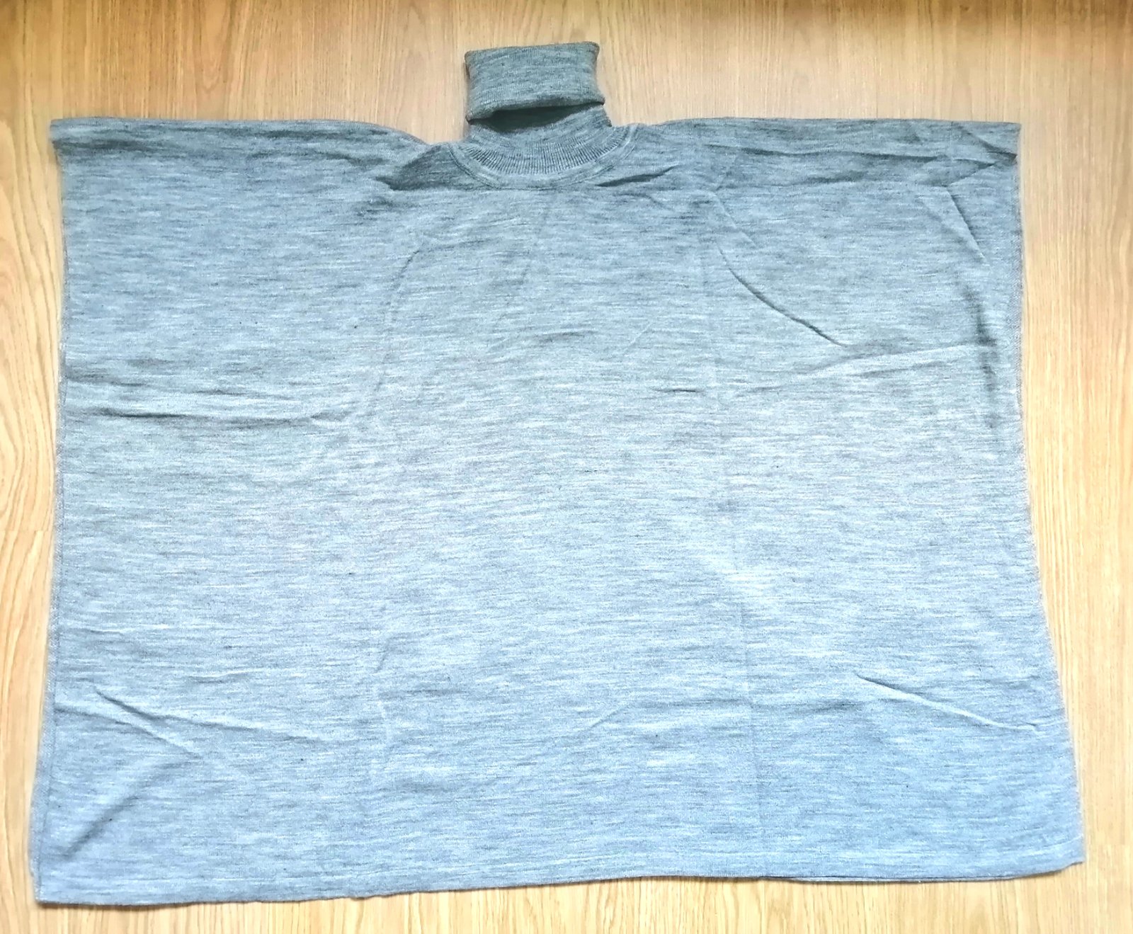 Krásne svetlosivé žerzejové pončo s rolákom, univerzálna veľkosť, rozmery : 76x98 cm.